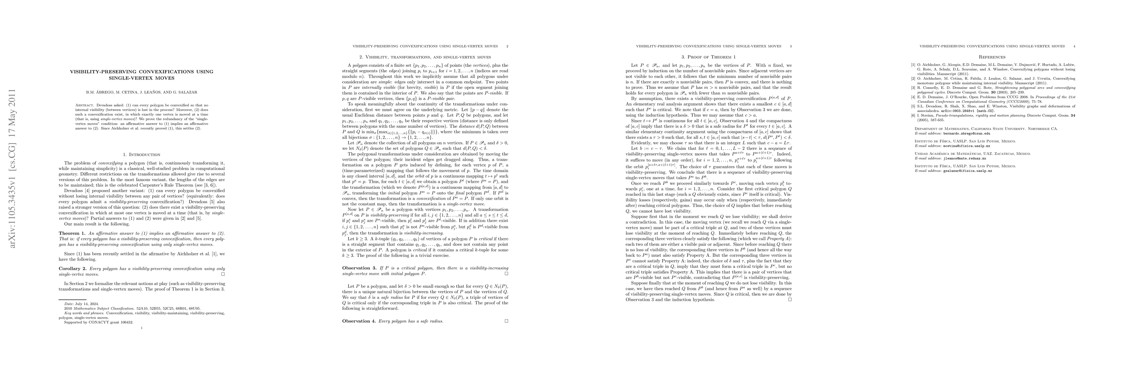 Devadoss asked: (1) can every polygon be convexified so that no internal visibility (between vertices) is lost in the process? Moreover, (2) does such a convexification exist, in which exactly one vertex is moved at a time (that is, using {\em single-vertex moves})? We prove the redundancy of the "single-vertex moves" condition: an affirmative answer to (1) implies an affirmative answer to (2). Since Aichholzer et al. recently proved (1), this settles (2).