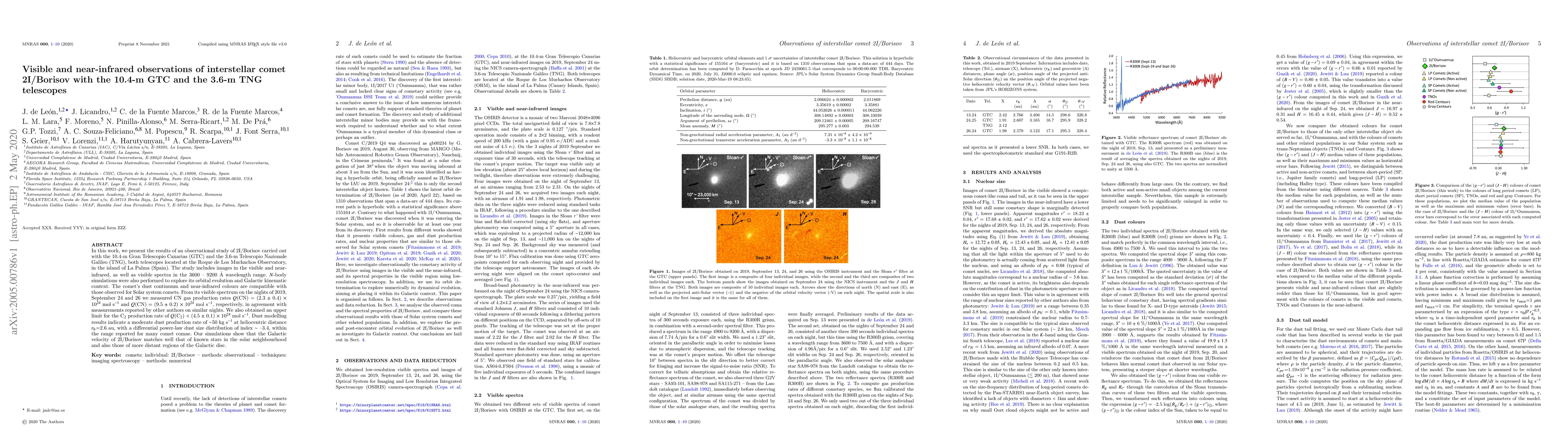 In this work, we present the results of an observational study of 2I/Borisov carried out with the 10.4-m Gran Telescopio Canarias (GTC) and the 3.6-m Telescopio Nazionale Galileo (TNG), both telescopes located at the Roque de Los Muchachos Observatory, in the island of La Palma (Spain). The study includes images in the visible and near-infrared, as well as visible spectra in the 3600 - 9200 A wavelength range. N-body simulations were also performed to explore its orbital evolution and Galactic kinematic context. The comet's dust continuum and near-infrared colours are compatible with those observed for Solar system comets. From its visible spectrum on the nights of 2019, September 24 and 26 we measured CN gas production rates Q(CN) = (2.3 +- 0.4) x 10^{24} mol/s and Q(CN) = (9.5 +- 0.2) x 10^{24} mol/s, respectively, in agreement with measurements reported by other authors on similar nights. We also obtained an upper limit for the C2 production rate of Q(C2) < (4.5 +- 0.1) x 10^{24} mol/s. Dust modelling results indicate a moderate dust production rate of about 50 kg/s at heliocentric distance r_h=2.6 au, with a differential power-law dust size distribution of index -3.4, within the range reported for many comet comae. Our simulations show that the Galactic velocity of 2I/Borisov matches well that of known stars in the solar neighbourhood and also those of more distant regions of the Galactic disc.