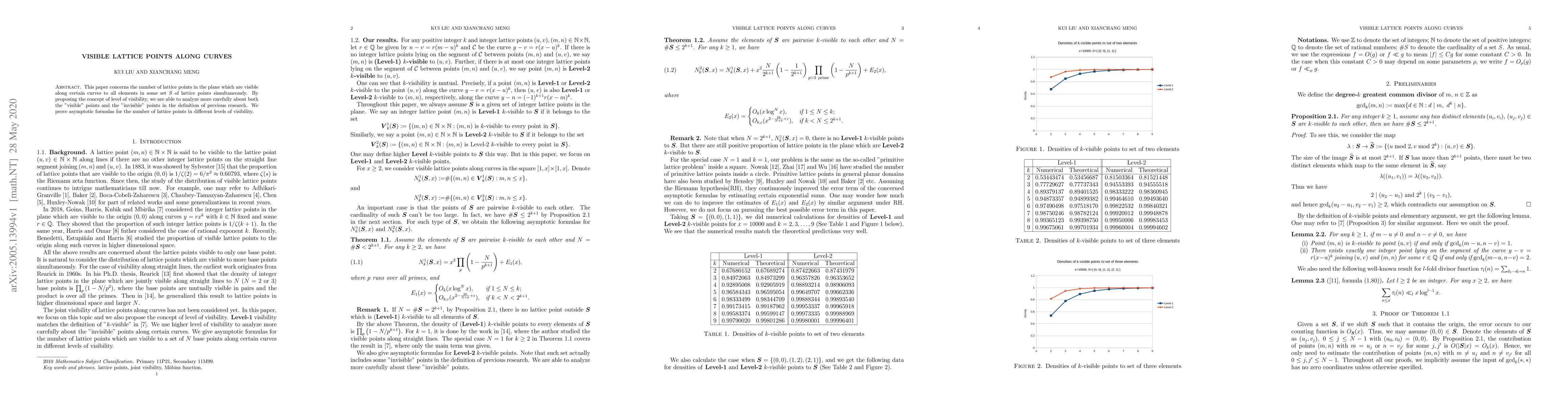 This paper investigates the number of visible lattice points in the plane along specific curves from a set S of lattice points, introducing the concept of visibility levels. It provides asymptotic formulas for the count of visible lattice points at different visibility levels.