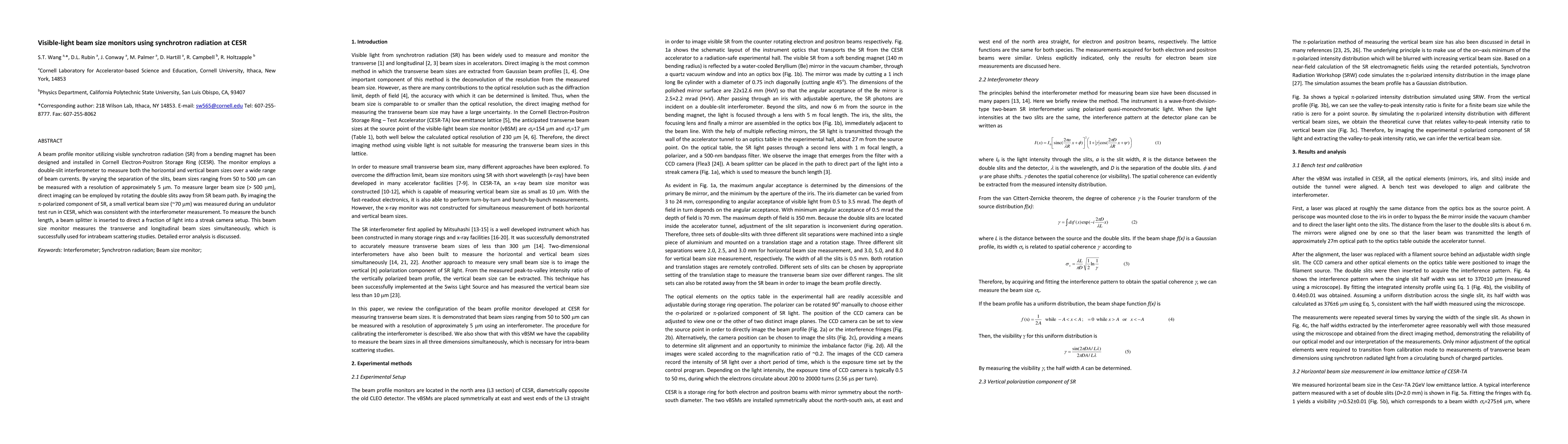 This research is significant as it provides a simultaneous measurement of transverse beam sizes and bunch length, which is crucial for accelerator physics studies, including intra-beam scattering investigations.