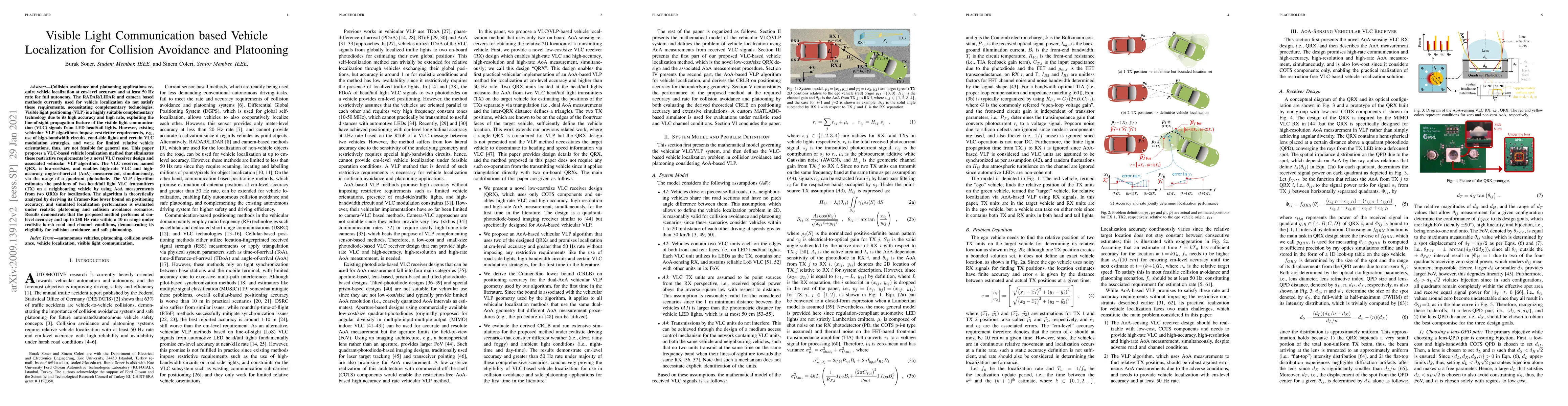 This paper proposes a novel VLC-based vehicle localization method using a low-cost VLC receiver (QRX) to achieve cm-level accuracy and high-rate positioning for collision avoidance and platooning. The QRX enables high-accuracy angle-of-arrival measurements without restrictive requirements, demonstrating cm-level accuracy and up to 250 Hz rate under realistic conditions.