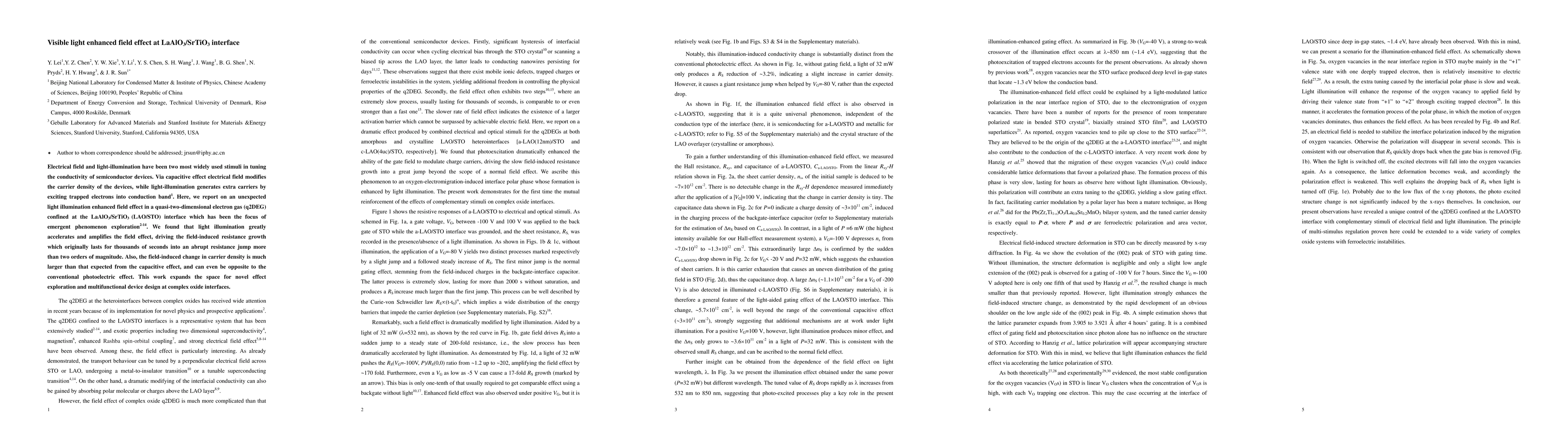 This research discovers an unforeseen phenomenon where visible light accelerates and amplifies the field effect at the LaAlO3/SrTiO3 interface, causing a significant resistance change that surpasses traditional capacitive and photoelectric effects, opening new possibilities for device design at complex oxide interfaces.