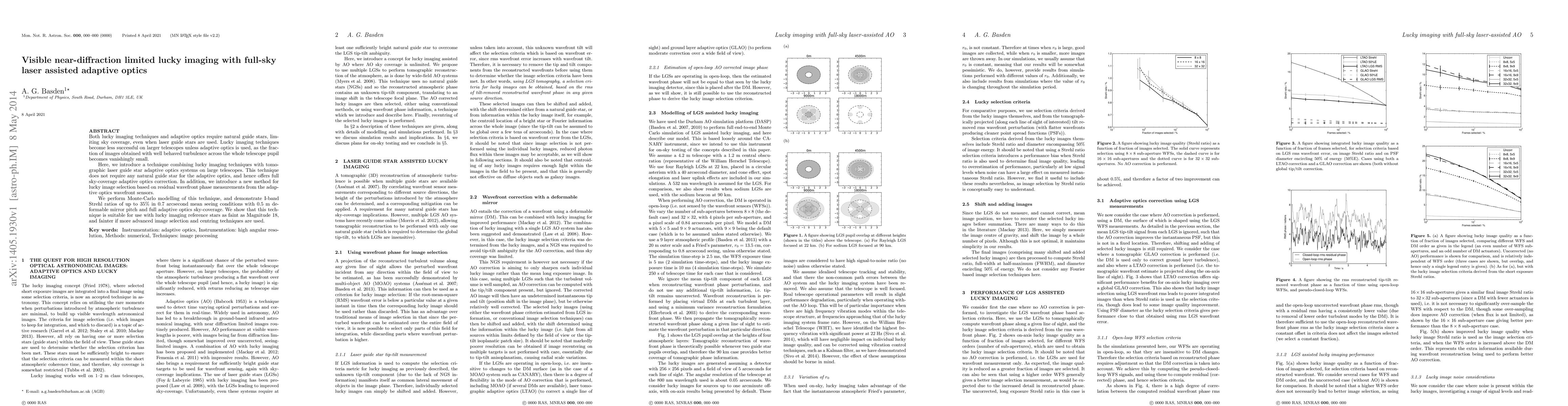 This paper presents a novel technique combining lucky imaging with full-sky laser-assisted adaptive optics, eliminating the need for natural guide stars and achieving near-diffraction-limited imaging across the entire sky. The method employs tomographic laser guide stars and advanced image selection based on adaptive optics wavefront sensors, demonstrating significant improvements in image quality under typical seeing conditions.