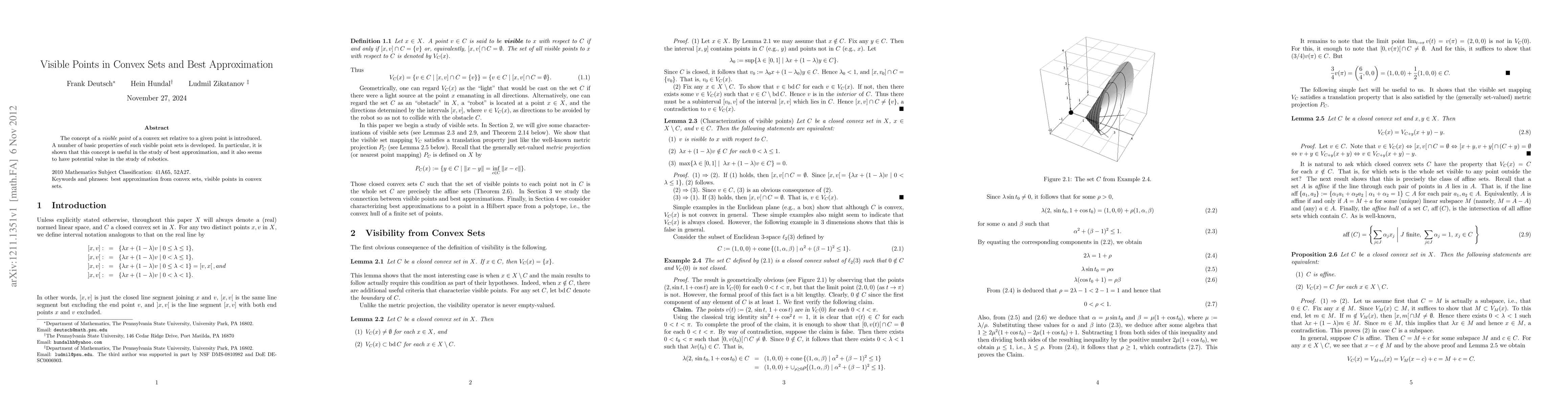 This paper introduces the concept of visible points in convex sets and explores its potential applications in best approximation and robotics, revealing useful properties that can aid in understanding these fields.