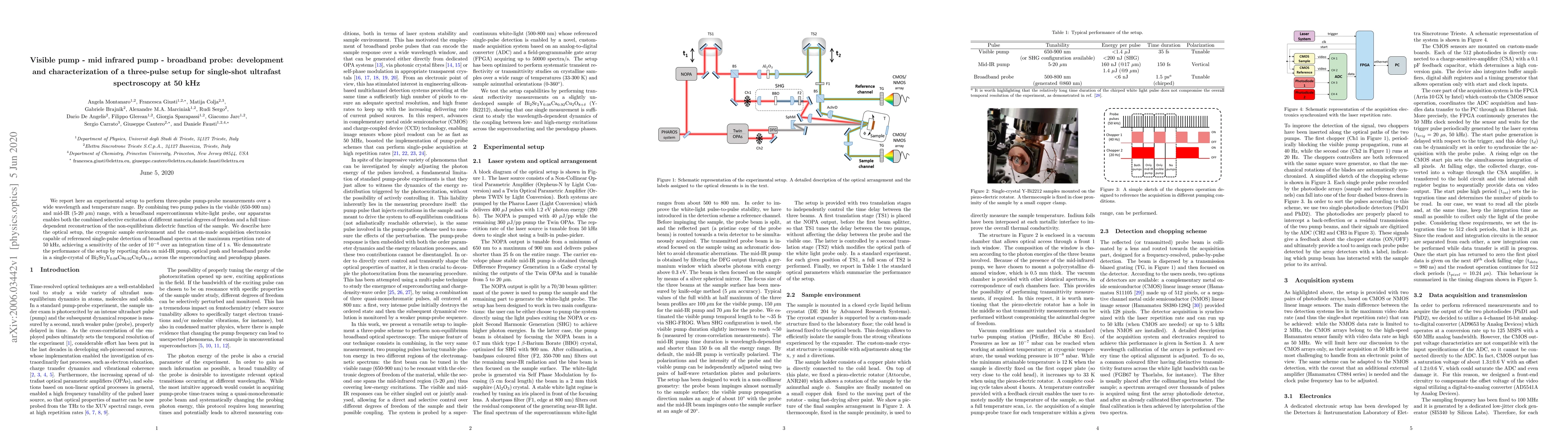 This paper presents a three-pulse pump-probe setup for ultrafast spectroscopy, combining visible and mid-IR pump pulses with a broadband probe to study the non-equilibrium dielectric function of materials at 50 kHz. The setup achieves high sensitivity and is demonstrated on a single-crystal superconductor.
