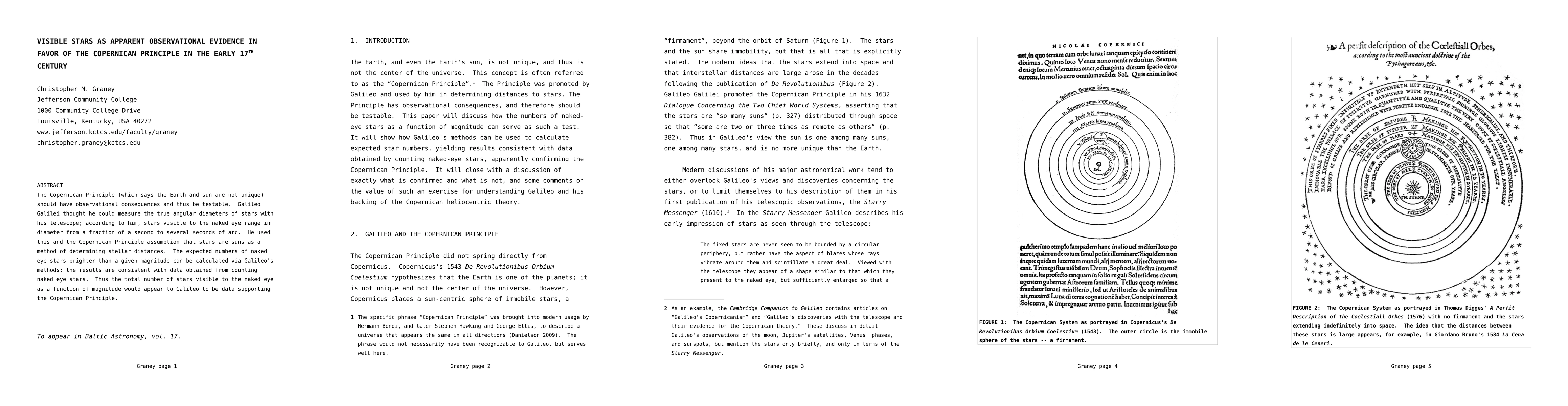 This paper examines Galileo Galilei's telescopic observations of visible stars, which he used to support the Copernican Principle by estimating stellar distances and counting naked-eye stars, finding consistency with theoretical predictions. The results suggest that early 17th-century observational data favored the Copernican Principle.