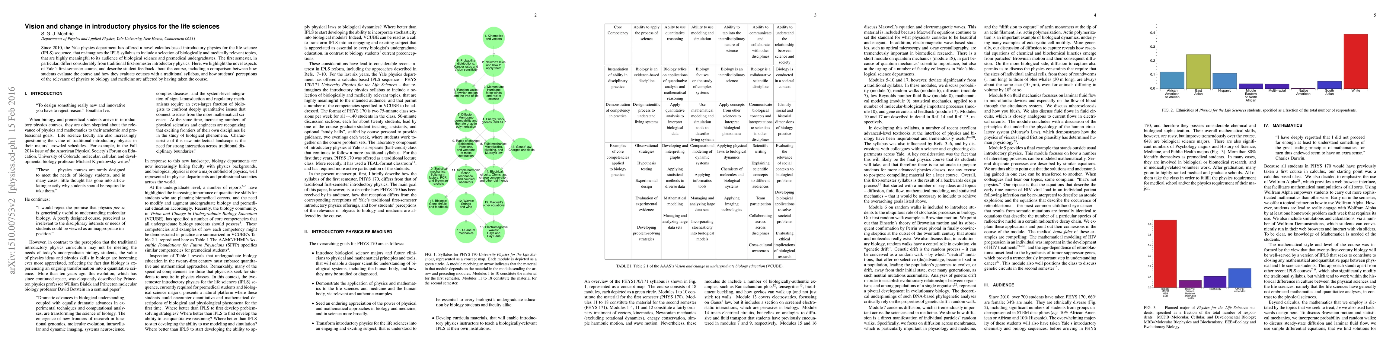 This paper discusses Yale's innovative calculus-based introductory physics course tailored for life sciences, emphasizing biologically relevant topics. It highlights student feedback comparing this course to traditional physics, noting changes in students' perceptions of physics' relevance to biology and medicine.