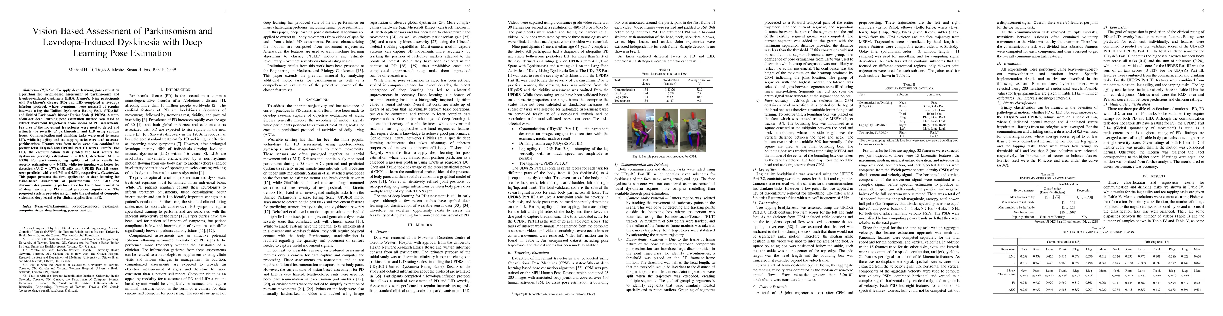 This study applies deep learning pose estimation to assess parkinsonism and levodopa-induced dyskinesia in Parkinson's disease patients, achieving promising results for both severity estimation and detection, suggesting potential for clinical applications.