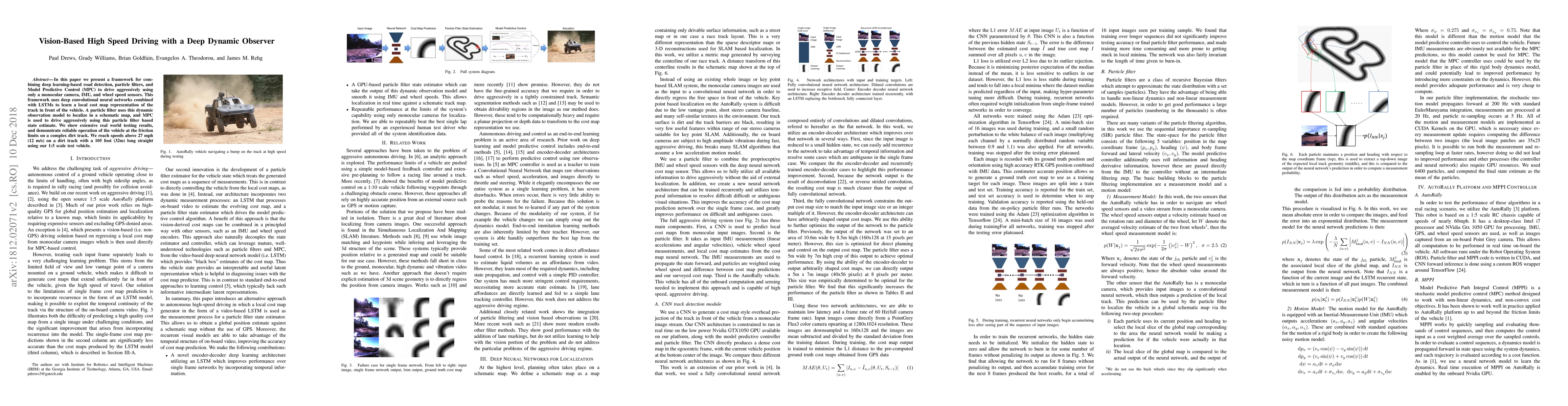 Researchers developed a system that enables high-speed driving using only a camera and sensors, reaching speeds of 27 mph on a dirt track with aggressive control. The framework combines deep learning, particle filters, and Model Predictive Control for reliable operation at friction limits.