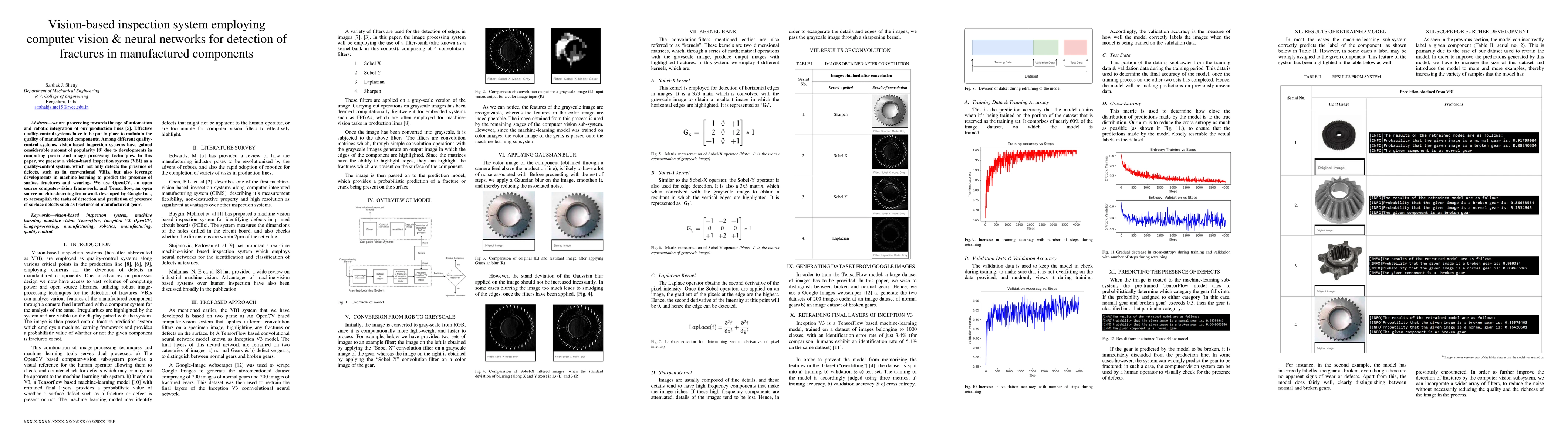 This paper introduces a vision-based inspection system (VBI) that employs computer vision and neural networks to detect and predict surface fractures in manufactured components, leveraging OpenCV and TensorFlow for advanced defect detection.