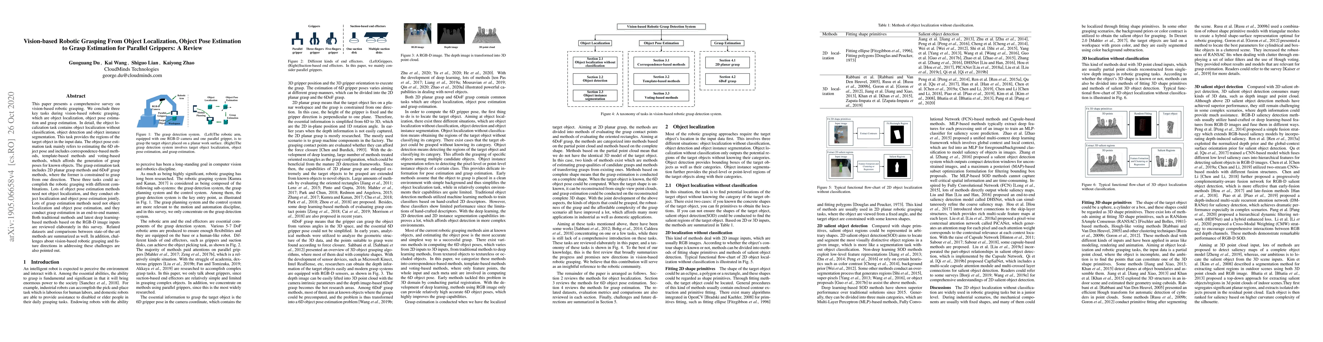 This paper reviews vision-based robotic grasping, focusing on three key tasks: object localization, object pose estimation, and grasp estimation. It elaborates on traditional and deep learning-based methods for these tasks, discusses related datasets, and highlights challenges and future directions.