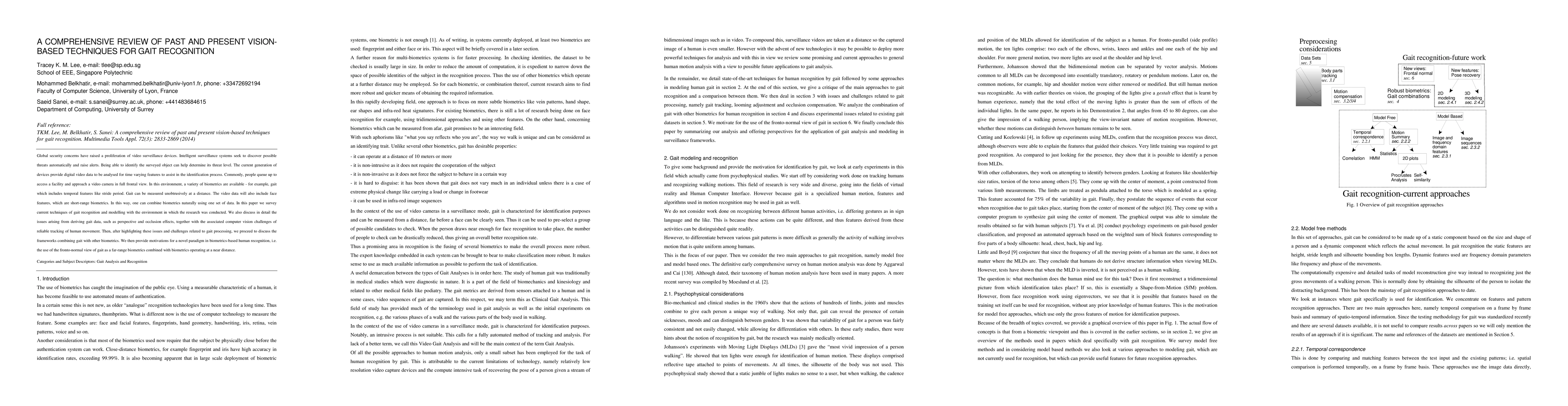 This paper surveys vision-based gait recognition techniques for intelligent surveillance systems, focusing on the challenges of perspective and occlusion effects in gait data. It also discusses frameworks combining gait with other biometrics and proposes a novel paradigm using fronto-normal view gait as a far-range biometric.