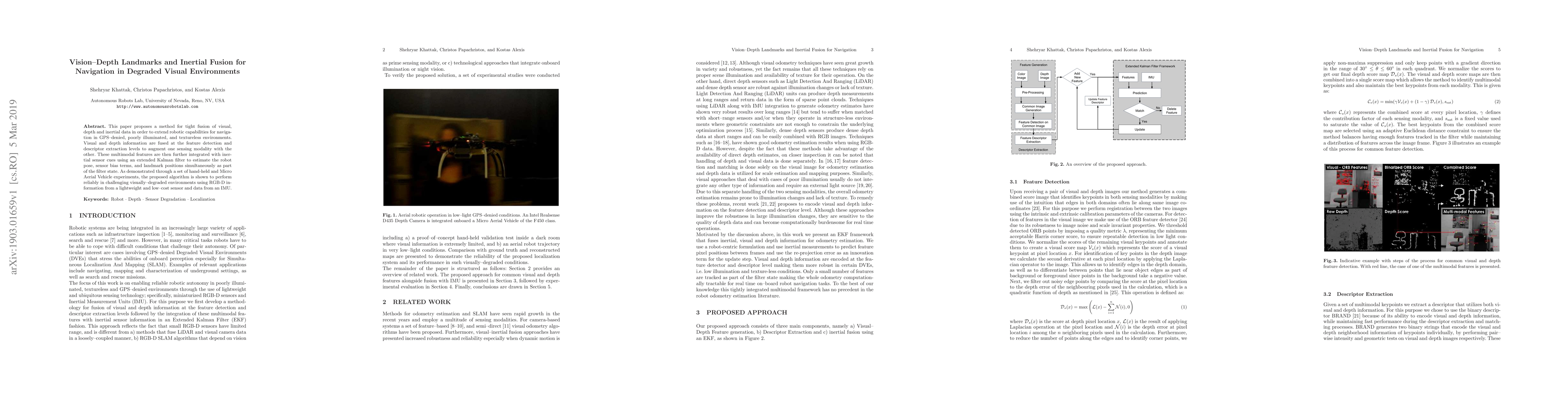 This paper presents a method for integrating visual, depth, and inertial data to enhance robotic navigation in GPS-denied, poorly lit, and texture-less environments. The fusion of multimodal features with inertial data via an extended Kalman filter enables reliable pose estimation and navigation in challenging conditions.