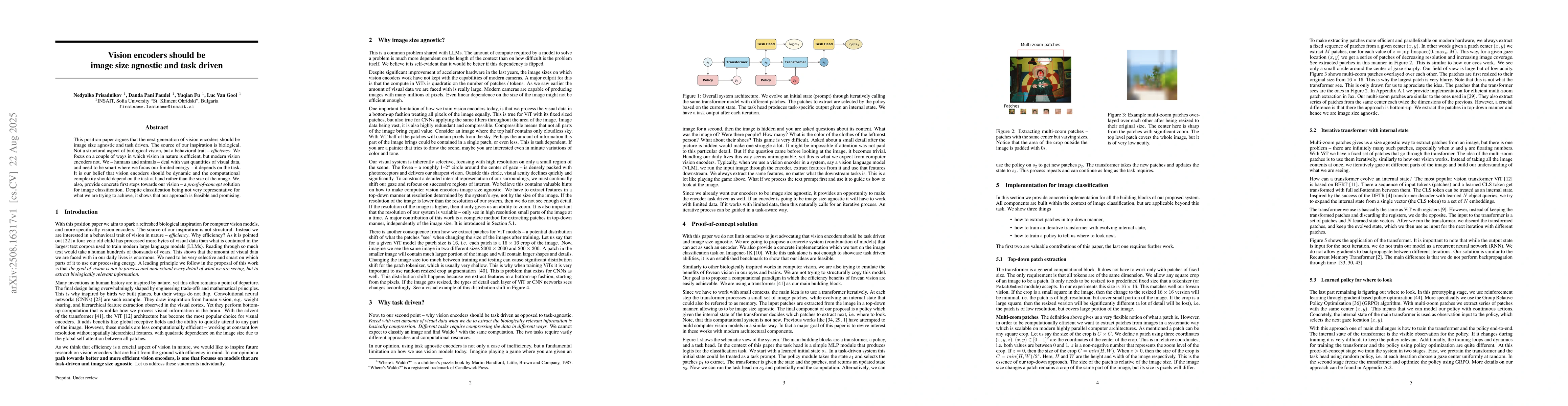 This position paper argues that the next generation of vision encoders should be image size agnostic and task driven. The source of our inspiration is biological. Not a structural aspect of biological vision, but a behavioral trait -- efficiency. We focus on a couple of ways in which vision in nature is efficient, but modern vision encoders not. We -- humans and animals -- deal with vast quantities of visual data, and need to be smart where we focus our limited energy -- it depends on the task. It is our belief that vision encoders should be dynamic and the computational complexity should depend on the task at hand rather than the size of the image. We, also, provide concrete first steps towards our vision -- a proof-of-concept solution for image classification. Despite classification being not very representative for what we are trying to achieve, it shows that our approach is feasible and promising.