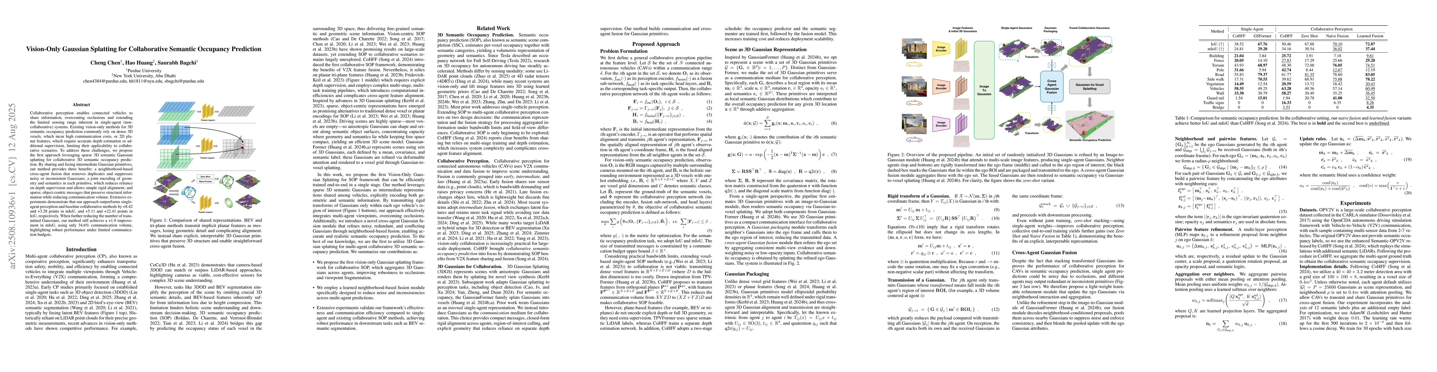 The research proposes a vision-only collaborative semantic occupancy prediction method using sparse 3D Gaussian splatting. It shares and fuses intermediate Gaussian primitives for neighborhood-based cross-agent fusion, reducing duplicates and suppressing noisy or inconsistent Gaussians.