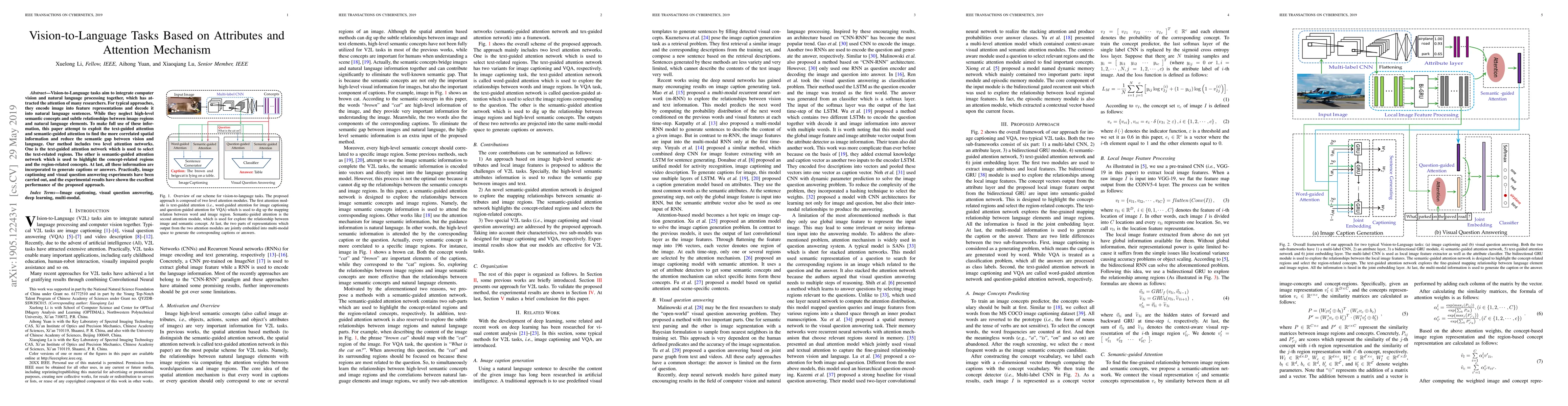 This paper proposes a method to enhance vision-to-language tasks by integrating text-guided attention and semantic-guided attention to better capture high-level semantic concepts and relationships, achieving superior performance in image captioning and visual question answering.