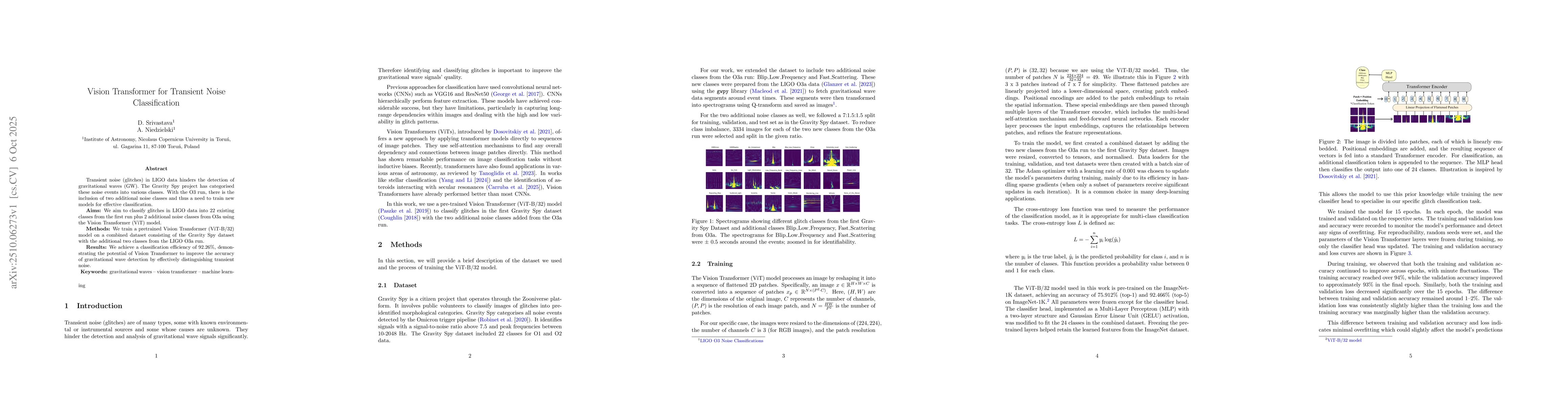 This research demonstrates the potential of Vision Transformers to improve the accuracy of gravitational wave detection by effectively distinguishing transient noise, which is crucial for analyzing LIGO data and identifying genuine gravitational wave signals.