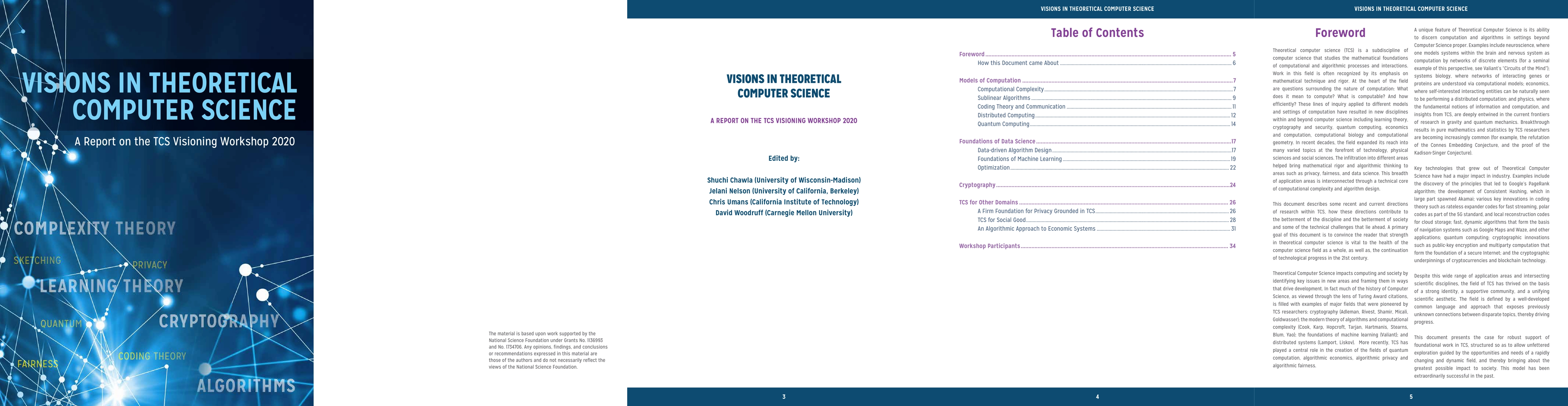 Theoretical computer science (TCS) is a subdiscipline of computer science that studies the mathematical foundations of computational and algorithmic processes and interactions. Work in this field is often recognized by its emphasis on mathematical technique and rigor. At the heart of the field are questions surrounding the nature of computation: What does it mean to compute? What is computable? And how efficiently? Every ten years or so the TCS community attends visioning workshops to discuss the challenges and recent accomplishments in the TCS field. The workshops and the outputs they produce are meant both as a reflection for the TCS community and as guiding principles for interested investment partners. Concretely, the workshop output consists of a number of nuggets, each summarizing a particular point, that are synthesized in the form of a white paper and illustrated with graphics/slides produced by a professional graphic designer. The second TCS Visioning Workshop was organized by the SIGACT Committee for the Advancement of Theoretical Computer Science and took place during the week of July 20, 2020. Despite the conference being virtual, there were over 76 participants, mostly from the United States, but also a few from Europe and Asia who were able to attend due to the online format. Workshop participants were divided into categories as reflected in the sections of this report: (1) models of computation; (2) foundations of data science; (3) cryptography; and (4) using theoretical computer science for other domains. Each group participated in a series of discussions that produced the nuggets below.