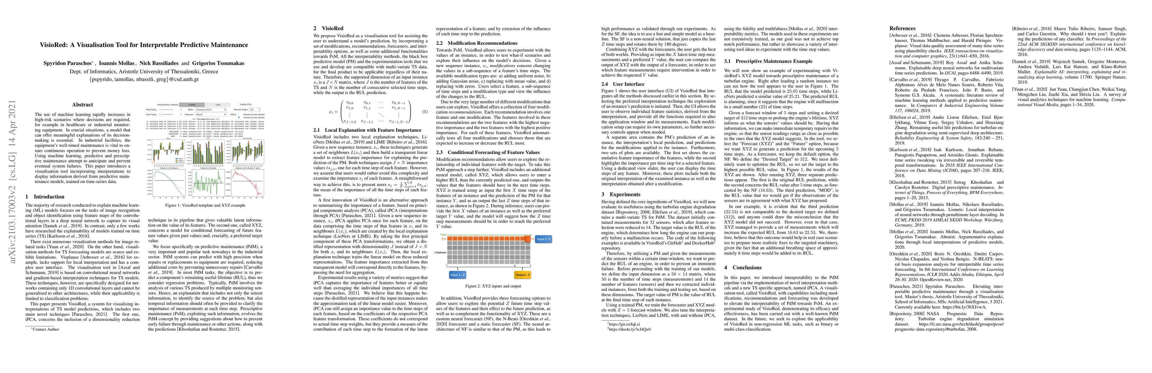 Title: VisioRed: A Visualisation Tool for Interpretable Predictive Maintenance Summary: VisioRed provides a visual tool for interpreting predictive maintenance models, offering explanations to enhance decision-making in high-risk industrial scenarios and ensuring timely equipment maintenance to prevent operational disruptions.
