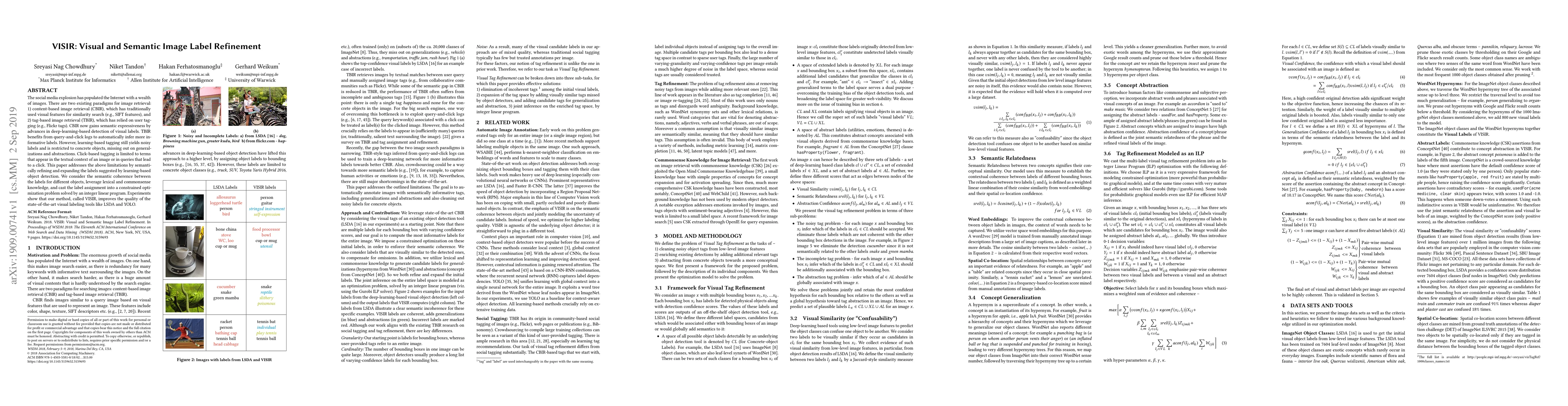 The VISIR method enhances visual image labeling by refining and expanding labels from learning-based object detection, considering semantic coherence and utilizing lexical and commonsense knowledge. Experiments demonstrate VISIR's improvement over existing tools like LSDA and YOLO.