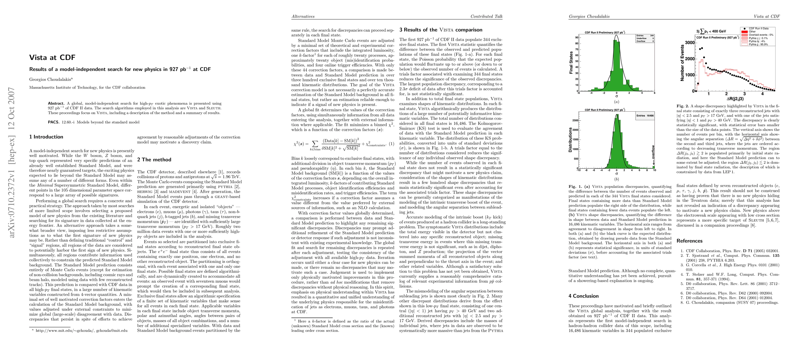 A global, model-independent search for high-pT exotic phenomena is presented using 927 pb^-1 of CDF II data. The search algorithms employed in this analysis are Vista and Sleuth. These proceedings focus on Vista, including a description of the method and a summary of results.