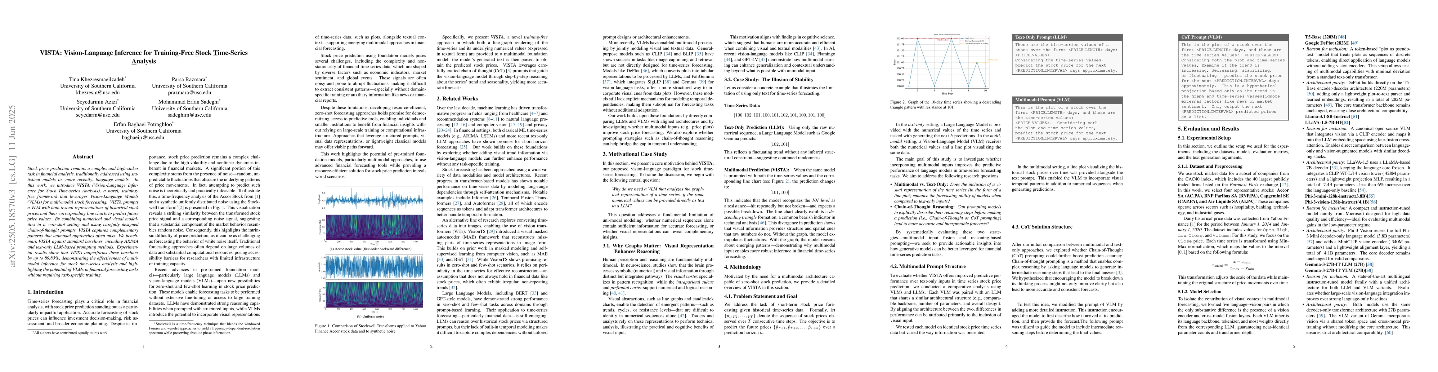 VISTA, a training-free framework utilizing VLMs for multi-modal stock time-series analysis, which combines textual and visual modalities to predict future price values.