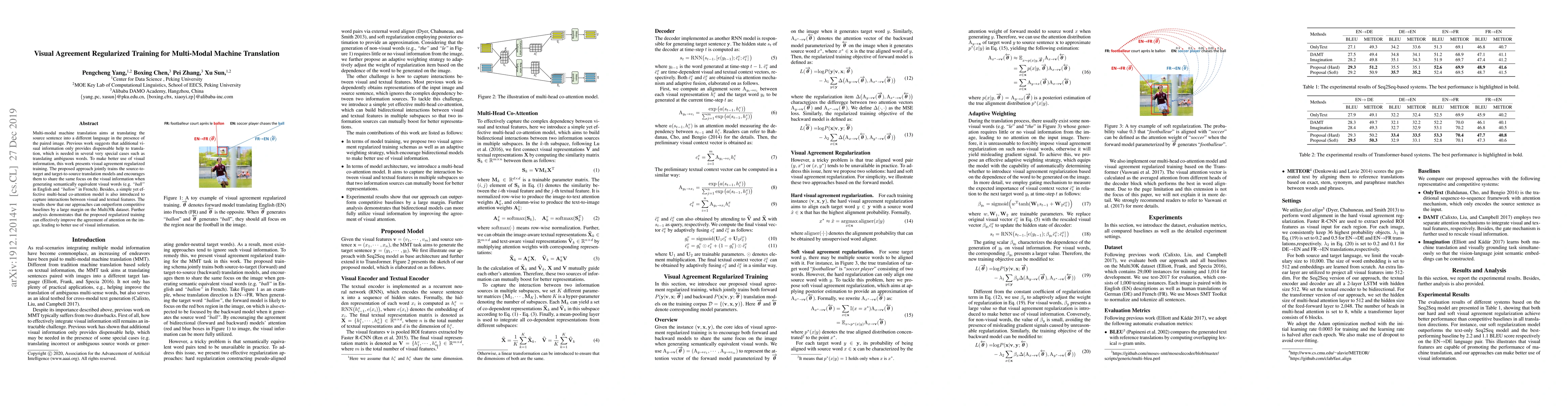 Multi-modal machine translation aims at translating the source sentence into a different language in the presence of the paired image. Previous work suggests that additional visual information only provides dispensable help to translation, which is needed in several very special cases such as translating ambiguous words. To make better use of visual information, this work presents visual agreement regularized training. The proposed approach jointly trains the source-to-target and target-to-source translation models and encourages them to share the same focus on the visual information when generating semantically equivalent visual words (e.g. "ball" in English and "ballon" in French). Besides, a simple yet effective multi-head co-attention model is also introduced to capture interactions between visual and textual features. The results show that our approaches can outperform competitive baselines by a large margin on the Multi30k dataset. Further analysis demonstrates that the proposed regularized training can effectively improve the agreement of attention on the image, leading to better use of visual information.