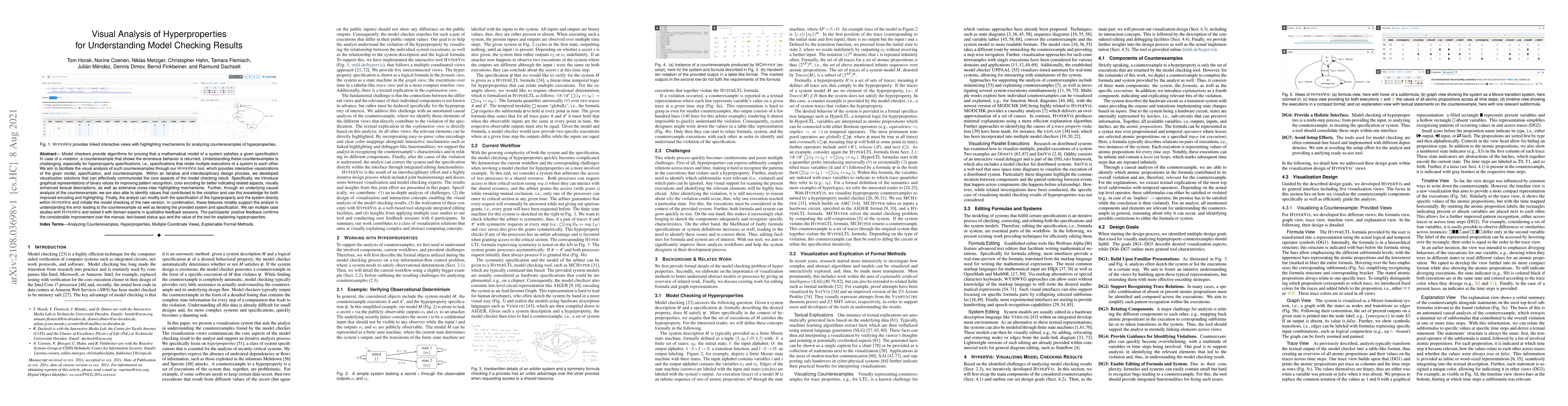 A research paper introduces HyperVis, a tool that facilitates visual analysis of hyperproperty specifications in model checking, providing interactive visualizations to improve understanding of counterexamples.