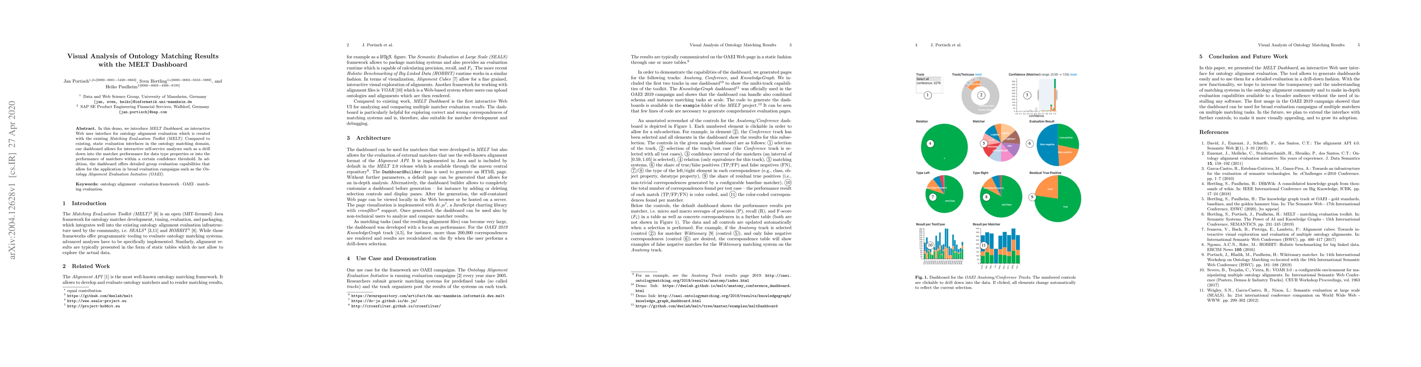 The MELT Dashboard is an interactive web interface for evaluating ontology alignment, enabling users to perform detailed, self-service analyses and drill down into matcher performance. It supports broad evaluation campaigns like the Ontology Alignment Evaluation Initiative (OAEI).