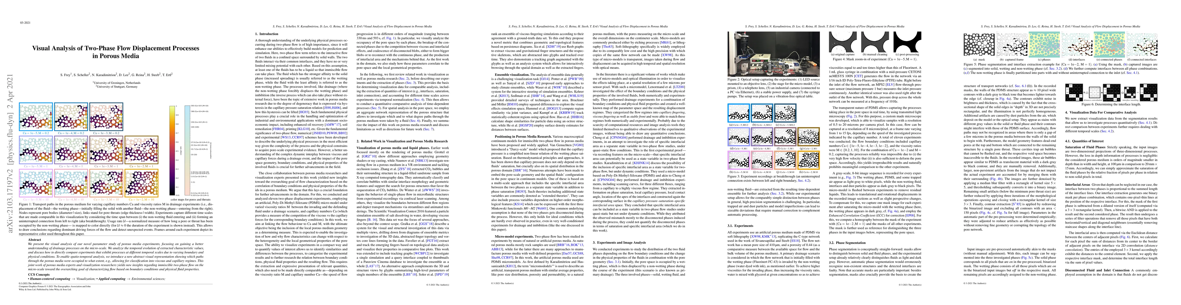 This paper visually analyzes experiments on two-phase flow displacement in porous media, introducing a new abstract visual representation to classify flow paths. The study aims to characterize immiscible two-phase flow on the micro-scale by comparing processes under different temporal and physical conditions.