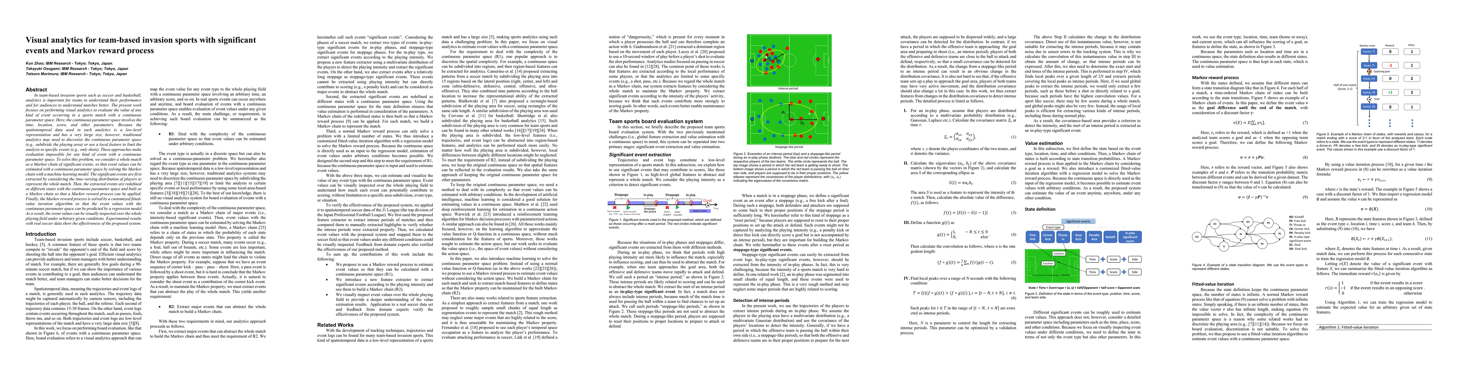 In team-based invasion sports such as soccer and basketball, analytics is important for teams to understand their performance and for audiences to understand matches better. The present work focuses on performing visual analytics to evaluate the value of any kind of event occurring in a sports match with a continuous parameter space. Here, the continuous parameter space involves the time, location, score, and other parameters. Because the spatiotemporal data used in such analytics is a low-level representation and has a very large size, however, traditional analytics may need to discretize the continuous parameter space (e.g., subdivide the playing area) or use a local feature to limit the analysis to specific events (e.g., only shots). These approaches make evaluation impossible for any kind of event with a continuous parameter space. To solve this problem, we consider a whole match as a Markov chain of significant events, so that event values can be estimated with a continuous parameter space by solving the Markov chain with a machine learning model. The significant events are first extracted by considering the time-varying distribution of players to represent the whole match. Then, the extracted events are redefined as different states with the continuous parameter space and built as a Markov chain so that a Markov reward process can be applied. Finally, the Markov reward process is solved by a customized fitted-value iteration algorithm so that the event values with the continuous parameter space can be predicted by a regression model. As a result, the event values can be visually inspected over the whole playing field under arbitrary given conditions. Experimental results with real soccer data show the effectiveness of the proposed system.