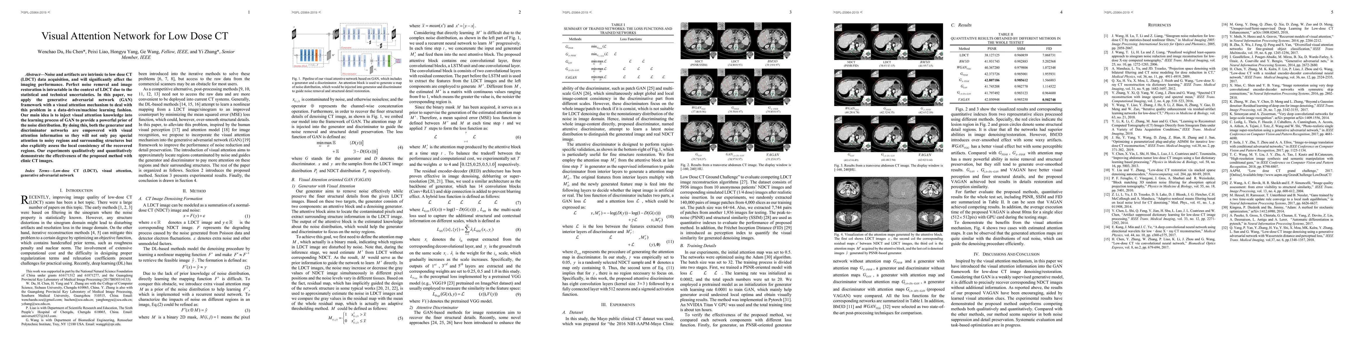 This paper proposes a generative adversarial network (GAN) with a visual attention mechanism to enhance low dose CT (LDCT) imaging. The visual attention injects noise distribution knowledge, enabling both the generator and discriminator to focus on noisy regions and assess local consistency, resulting in improved image quality as shown by qualitative and quantitative experiments.