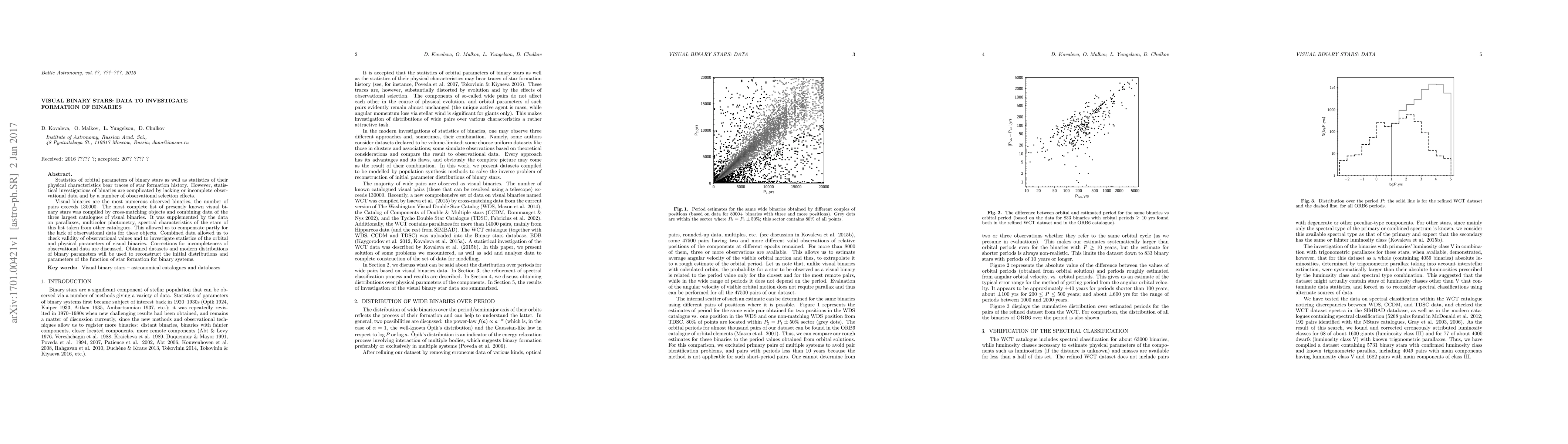This paper compiles and analyzes the most complete dataset of visual binary stars to date, aiming to investigate the formation history of binary systems. The study corrects for observational data incompleteness and uses the compiled data to reconstruct initial distributions and parameters of binary star formation.