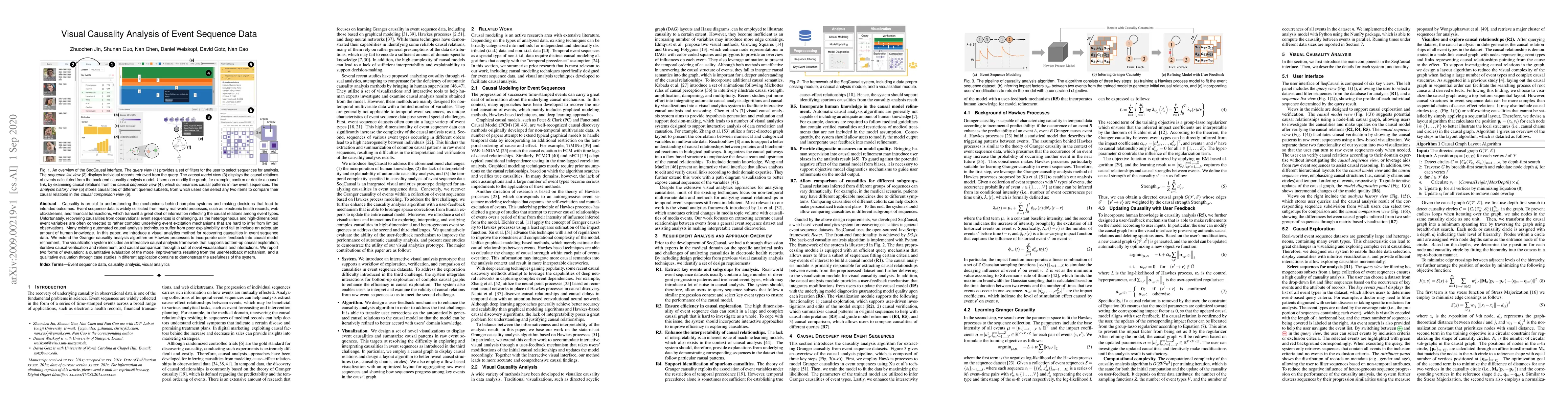 This paper presents a visual analytics method for uncovering causal relationships in complex event sequence data, integrating Granger causality analysis within Hawkes processes to refine models with user feedback. The system supports interactive causal exploration and verification, demonstrated through quantitative and qualitative evaluations across various domains.