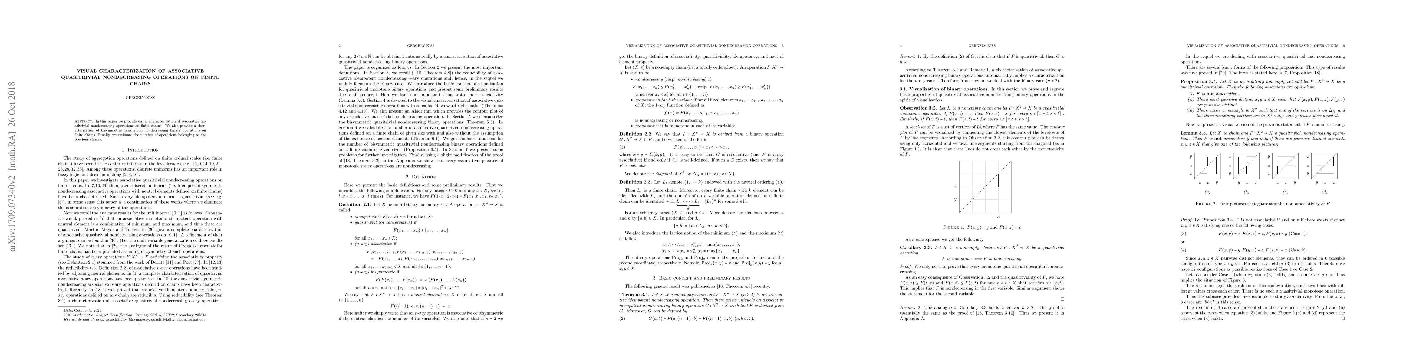 This paper visually characterizes associative quasitrivial nondecreasing operations on finite chains and bisymmetric quasitrivial nondecreasing binary operations, while also estimating the number of functions in these classes.