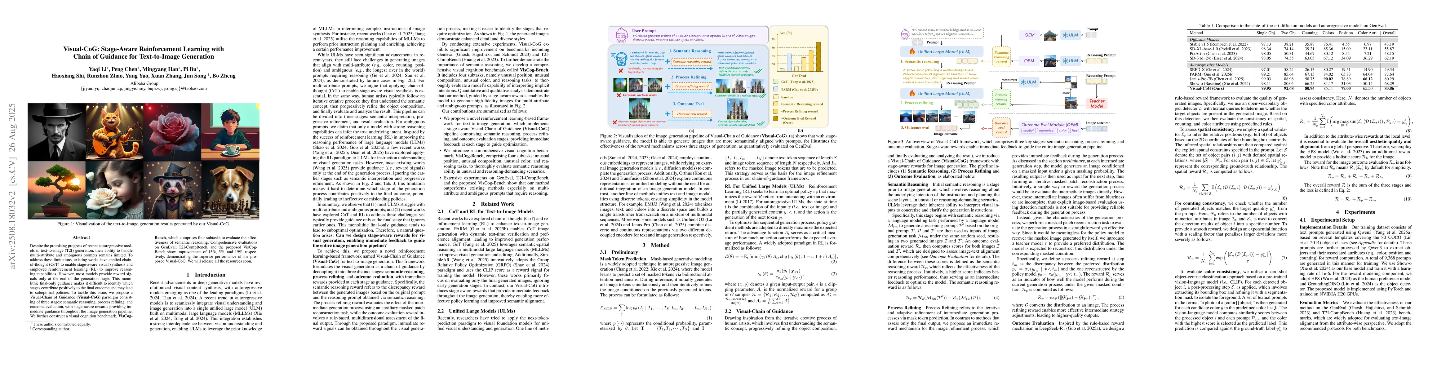 Despite the promising progress of recent autoregressive models in text-to-image (T2I) generation, their ability to handle multi-attribute and ambiguous prompts remains limited. To address these limitations, existing works have applied chain-of-thought (CoT) to enable stage-aware visual synthesis and employed reinforcement learning (RL) to improve reasoning capabilities. However, most models provide reward signals only at the end of the generation stage. This monolithic final-only guidance makes it difficult to identify which stages contribute positively to the final outcome and may lead to suboptimal policies. To tackle this issue, we propose a Visual-Chain of Guidance (Visual-CoG) paradigm consisting of three stages: semantic reasoning, process refining, and outcome evaluation, with stage-aware rewards providing immediate guidance throughout the image generation pipeline. We further construct a visual cognition benchmark, VisCog-Bench, which comprises four subtasks to evaluate the effectiveness of semantic reasoning. Comprehensive evaluations on GenEval, T2I-CompBench, and the proposed VisCog-Bench show improvements of 15%, 5%, and 19%, respectively, demonstrating the superior performance of the proposed Visual-CoG. We will release all the resources soon.