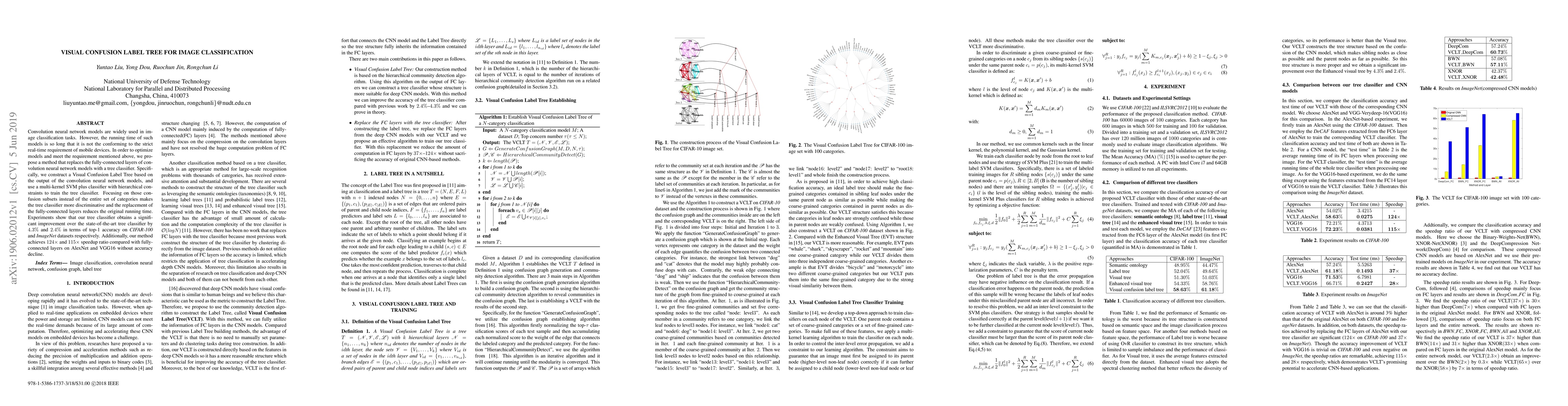 Convolution neural network models are widely used in image classification tasks. However, the running time of such models is so long that it is not the conforming to the strict real-time requirement of mobile devices. In order to optimize models and meet the requirement mentioned above, we propose a method that replaces the fully-connected layers of convolution neural network models with a tree classifier. Specifically, we construct a Visual Confusion Label Tree based on the output of the convolution neural network models, and use a multi-kernel SVM plus classifier with hierarchical constraints to train the tree classifier. Focusing on those confusion subsets instead of the entire set of categories makes the tree classifier more discriminative and the replacement of the fully-connected layers reduces the original running time. Experiments show that our tree classifier obtains a significant improvement over the state-of-the-art tree classifier by 4.3% and 2.4% in terms of top-1 accuracy on CIFAR-100 and ImageNet datasets respectively. Additionally, our method achieves 124x and 115x speedup ratio compared with fully-connected layers on AlexNet and VGG16 without accuracy decline.