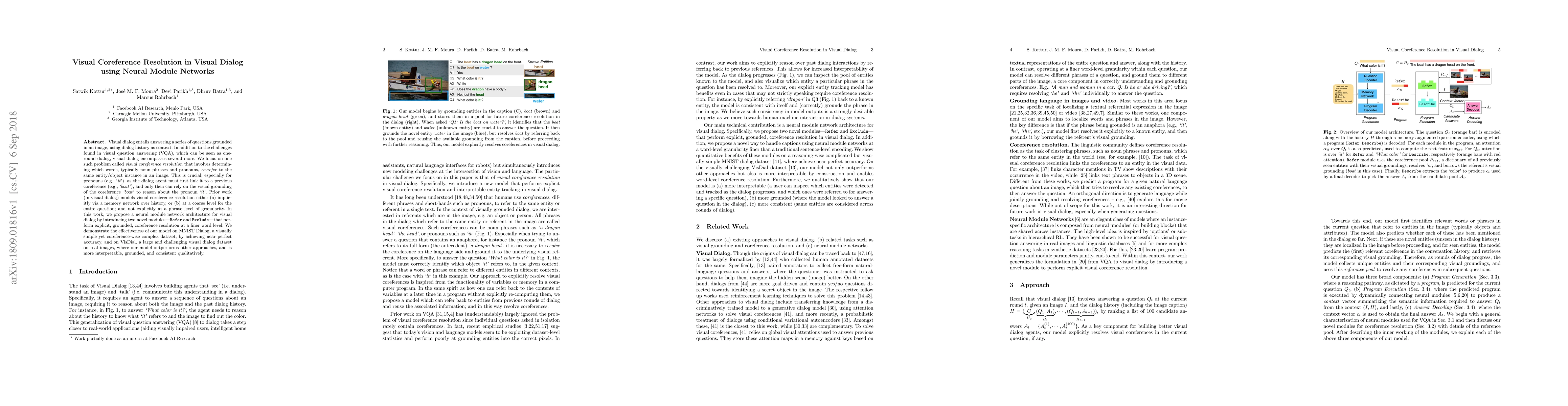 This paper introduces a neural module network for visual dialog that tackles visual coreference resolution, enabling the dialog agent to explicitly link pronouns to their antecedents at a word level. The proposed Refer and Exclude modules achieve near perfect accuracy on MNIST Dialog and outperform other methods on VisDial, demonstrating improved interpretability and consistency.