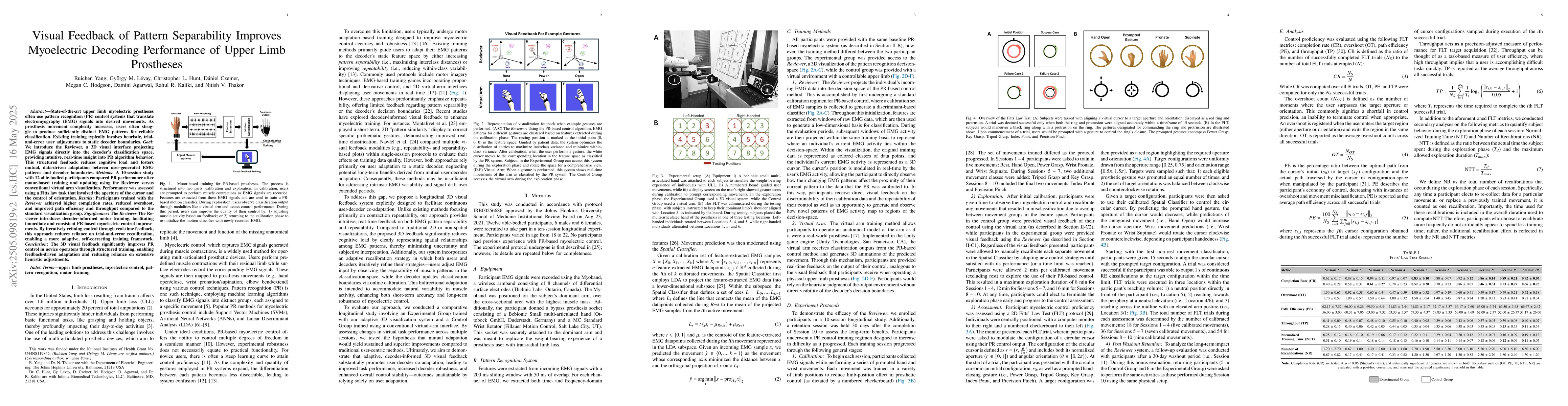 A 10-session study with 12 able-bodied participants compared PR performance after motor-based training and updating using the Reviewer (a 3D visual interface) versus conventional virtual arm visualization.