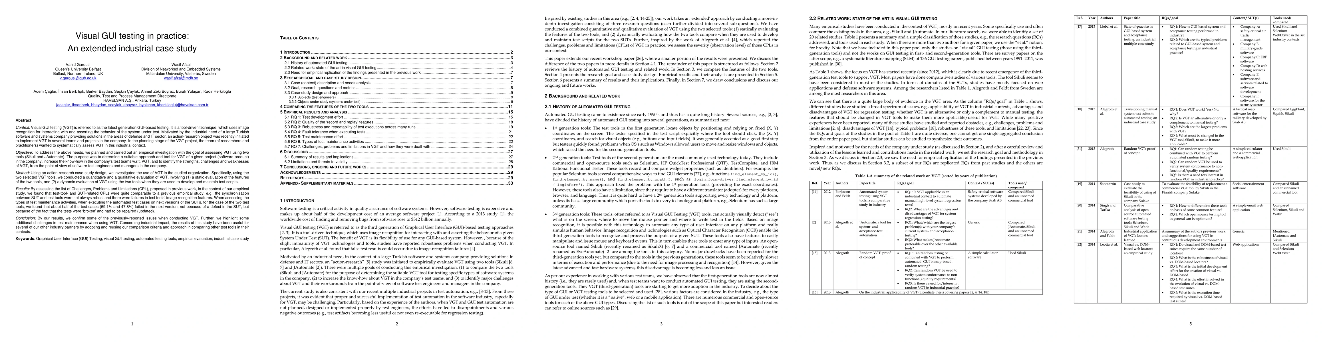 This study investigates the practical implementation of Visual GUI Testing (VGT) in a large Turkish software company using Sikuli and JAutomate tools. The results confirm previous challenges in synchronization and image recognition, and highlight significant test maintenance issues, indicating ongoing difficulties in adopting VGT.