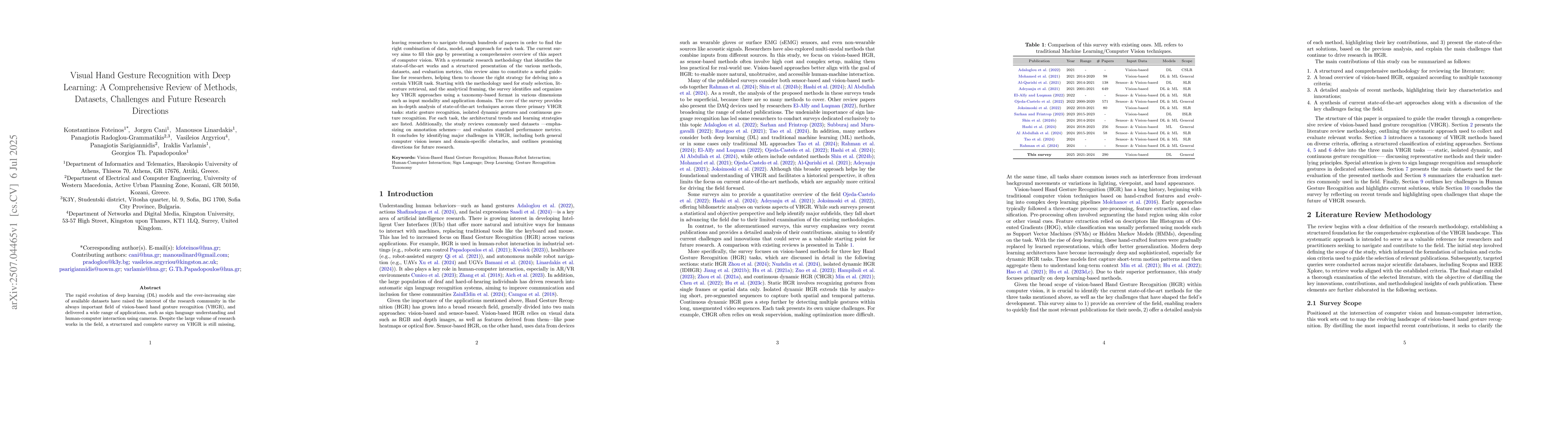 The rapid evolution of deep learning (DL) models and the ever-increasing size of available datasets have raised the interest of the research community in the always important field of vision-based hand gesture recognition (VHGR), and delivered a wide range of applications, such as sign language understanding and human-computer interaction using cameras. Despite the large volume of research works in the field, a structured and complete survey on VHGR is still missing, leaving researchers to navigate through hundreds of papers in order to find the right combination of data, model, and approach for each task. The current survey aims to fill this gap by presenting a comprehensive overview of this aspect of computer vision. With a systematic research methodology that identifies the state-of-the-art works and a structured presentation of the various methods, datasets, and evaluation metrics, this review aims to constitute a useful guideline for researchers, helping them to choose the right strategy for delving into a certain VHGR task. Starting with the methodology used for study selection, literature retrieval, and the analytical framing, the survey identifies and organizes key VHGR approaches using a taxonomy-based format in various dimensions such as input modality and application domain. The core of the survey provides an in-depth analysis of state-of-the-art techniques across three primary VHGR tasks: static gesture recognition, isolated dynamic gestures and continuous gesture recognition. For each task, the architectural trends and learning strategies are listed. Additionally, the study reviews commonly used datasets - emphasizing on annotation schemes - and evaluates standard performance metrics. It concludes by identifying major challenges in VHGR, including both general computer vision issues and domain-specific obstacles, and outlines promising directions for future research.