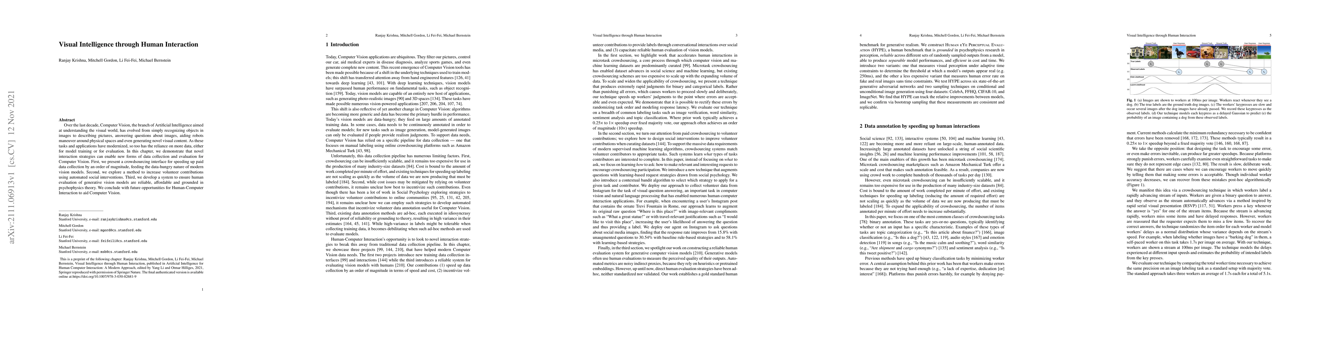 Over the last decade, Computer Vision, the branch of Artificial Intelligence aimed at understanding the visual world, has evolved from simply recognizing objects in images to describing pictures, answering questions about images, aiding robots maneuver around physical spaces and even generating novel visual content. As these tasks and applications have modernized, so too has the reliance on more data, either for model training or for evaluation. In this chapter, we demonstrate that novel interaction strategies can enable new forms of data collection and evaluation for Computer Vision. First, we present a crowdsourcing interface for speeding up paid data collection by an order of magnitude, feeding the data-hungry nature of modern vision models. Second, we explore a method to increase volunteer contributions using automated social interventions. Third, we develop a system to ensure human evaluation of generative vision models are reliable, affordable and grounded in psychophysics theory. We conclude with future opportunities for Human-Computer Interaction to aid Computer Vision.
