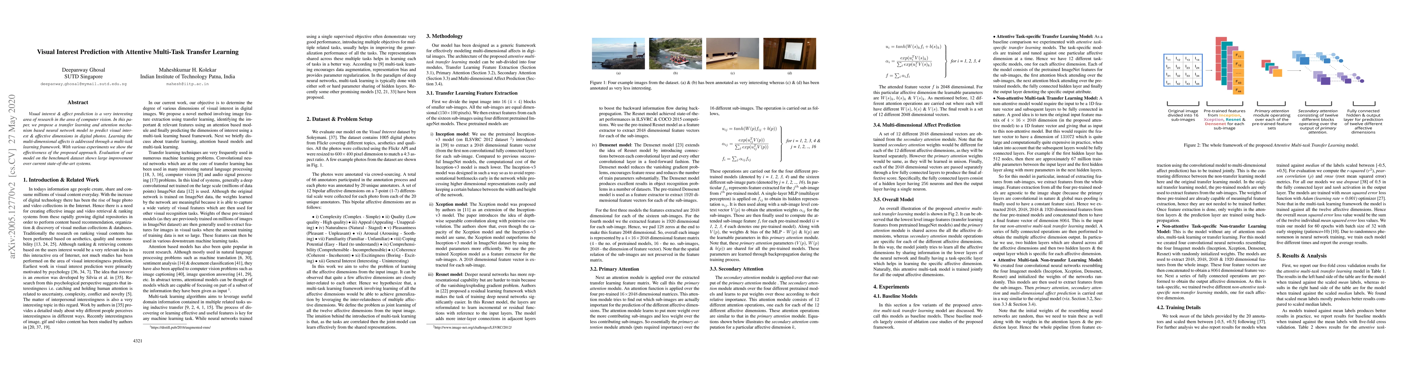 A new neural network model predicts visual interest and affective dimensions in digital photos using transfer learning and attention mechanisms, outperforming current state-of-the-art systems with large improvements on a benchmark dataset.