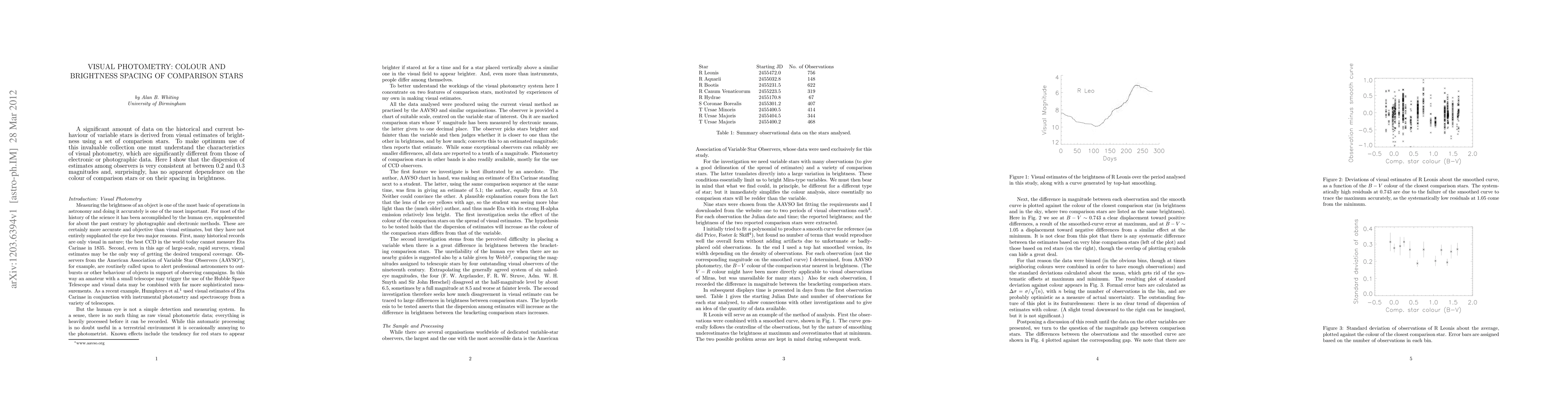 Research finds that observers' estimates of brightness using comparison stars have a consistent dispersion of 0.2-0.3 magnitudes, regardless of comparison star color or spacing.
