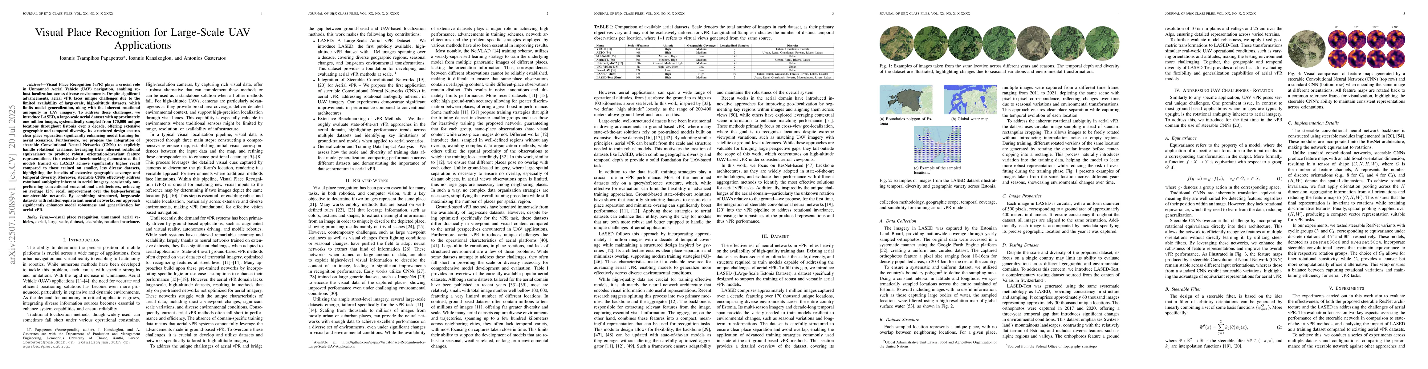 Visual Place Recognition (vPR) plays a crucial role in Unmanned Aerial Vehicle (UAV) navigation, enabling robust localization across diverse environments. Despite significant advancements, aerial vPR faces unique challenges due to the limited availability of large-scale, high-altitude datasets, which limits model generalization, along with the inherent rotational ambiguity in UAV imagery. To address these challenges, we introduce LASED, a large-scale aerial dataset with approximately one million images, systematically sampled from 170,000 unique locations throughout Estonia over a decade, offering extensive geographic and temporal diversity. Its structured design ensures clear place separation significantly enhancing model training for aerial scenarios. Furthermore, we propose the integration of steerable Convolutional Neural Networks (CNNs) to explicitly handle rotational variance, leveraging their inherent rotational equivariance to produce robust, orientation-invariant feature representations. Our extensive benchmarking demonstrates that models trained on LASED achieve significantly higher recall compared to those trained on smaller, less diverse datasets, highlighting the benefits of extensive geographic coverage and temporal diversity. Moreover, steerable CNNs effectively address rotational ambiguity inherent in aerial imagery, consistently outperforming conventional convolutional architectures, achieving on average 12\% recall improvement over the best-performing non-steerable network. By combining structured, large-scale datasets with rotation-equivariant neural networks, our approach significantly enhances model robustness and generalization for aerial vPR.