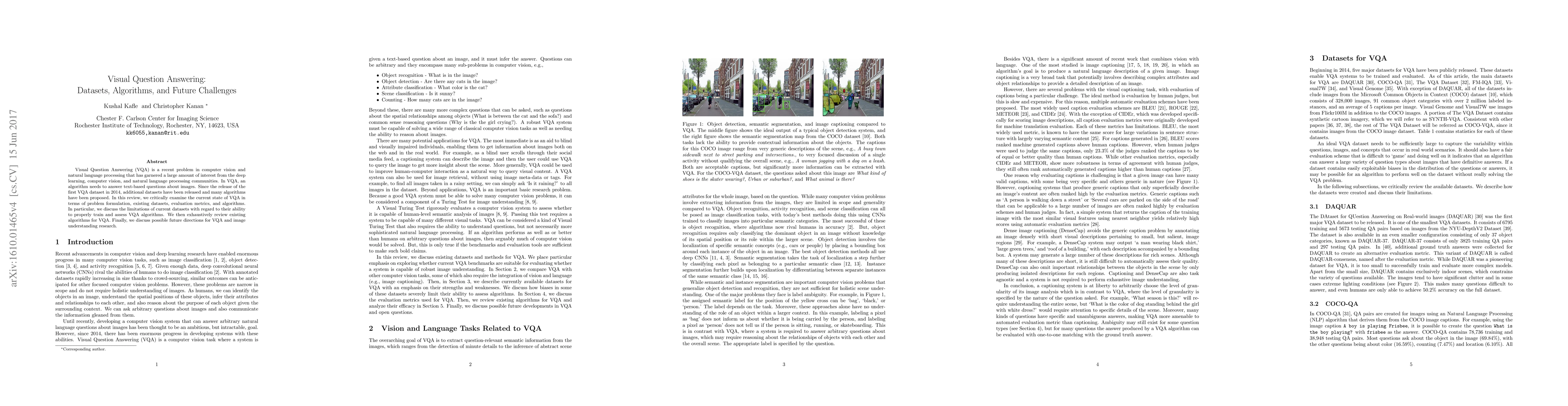 This paper reviews the state of Visual Question Answering (VQA), analyzing existing datasets, evaluation metrics, and algorithms. It highlights limitations in current datasets and proposes future research directions to advance image understanding.