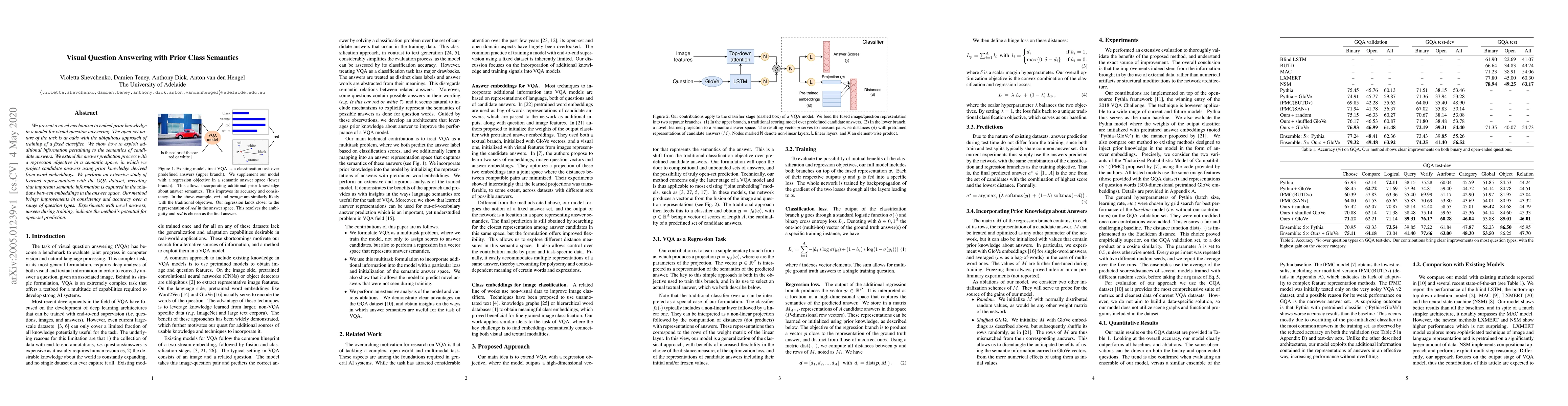The paper proposes a novel mechanism for Visual Question Answering (VQA) that embeds prior knowledge using word embeddings in a semantic space, extending the answer prediction process with a regression objective. It's evaluated extensively on the GQA dataset.