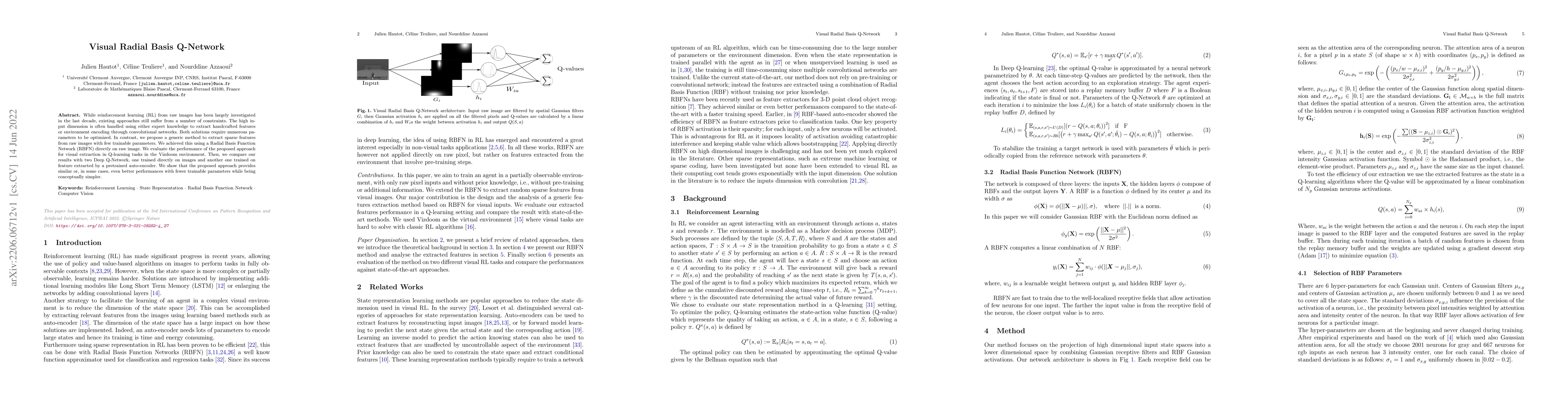 While reinforcement learning (RL) from raw images has been largely investigated in the last decade, existing approaches still suffer from a number of constraints. The high input dimension is often handled using either expert knowledge to extract handcrafted features or environment encoding through convolutional networks. Both solutions require numerous parameters to be optimized. In contrast, we propose a generic method to extract sparse features from raw images with few trainable parameters. We achieved this using a Radial Basis Function Network (RBFN) directly on raw image. We evaluate the performance of the proposed approach for visual extraction in Q-learning tasks in the Vizdoom environment. Then, we compare our results with two Deep Q-Network, one trained directly on images and another one trained on feature extracted by a pretrained auto-encoder. We show that the proposed approach provides similar or, in some cases, even better performances with fewer trainable parameters while being conceptually simpler.