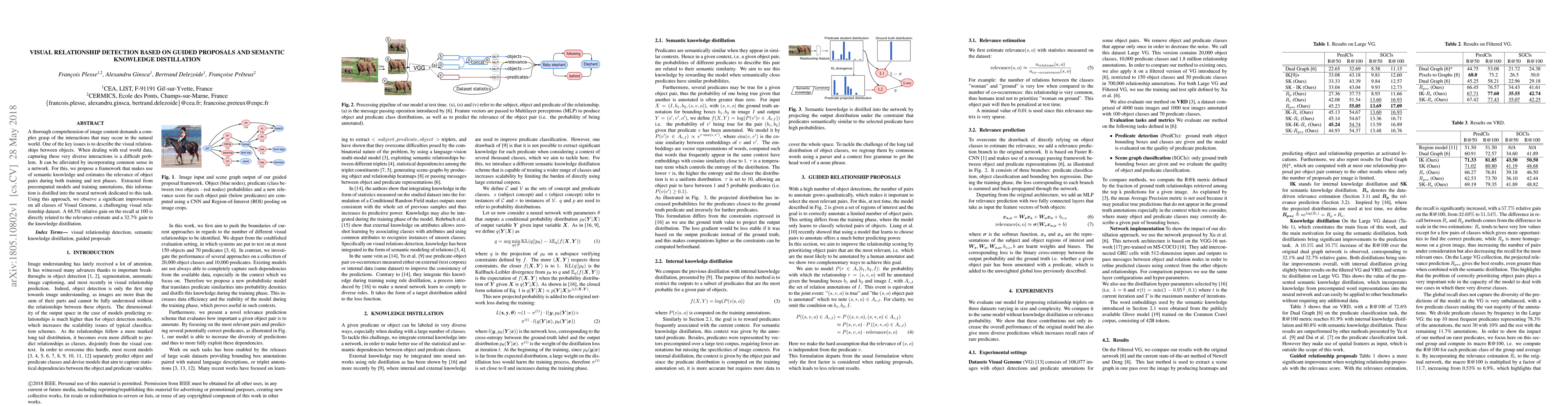 A thorough comprehension of image content demands a complex grasp of the interactions that may occur in the natural world. One of the key issues is to describe the visual relationships between objects. When dealing with real world data, capturing these very diverse interactions is a difficult problem. It can be alleviated by incorporating common sense in a network. For this, we propose a framework that makes use of semantic knowledge and estimates the relevance of object pairs during both training and test phases. Extracted from precomputed models and training annotations, this information is distilled into the neural network dedicated to this task. Using this approach, we observe a significant improvement on all classes of Visual Genome, a challenging visual relationship dataset. A 68.5% relative gain on the recall at 100 is directly related to the relevance estimate and a 32.7% gain to the knowledge distillation.