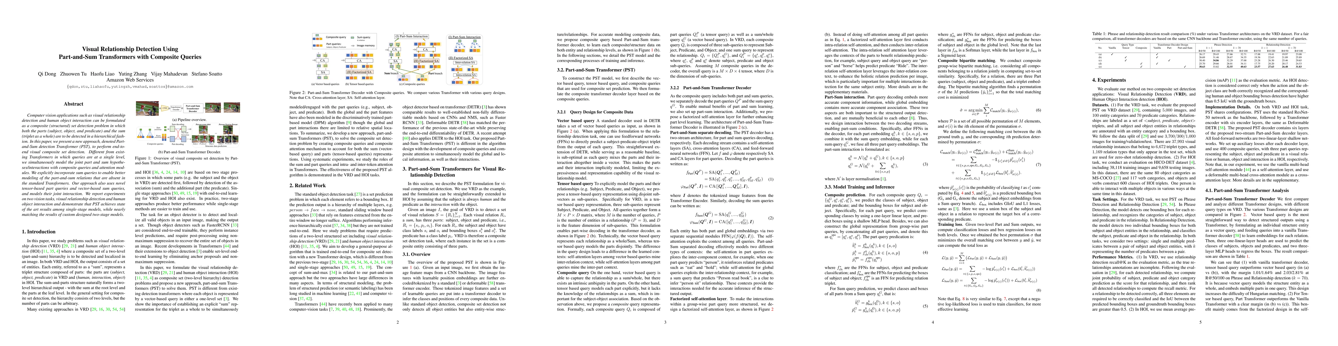 This paper introduces the Part-and-Sum detection Transformer (PST) for visual relationship detection, employing composite queries to model both individual parts and their combined interactions. PST achieves state-of-the-art results in visual relationship detection and human-object interaction tasks.